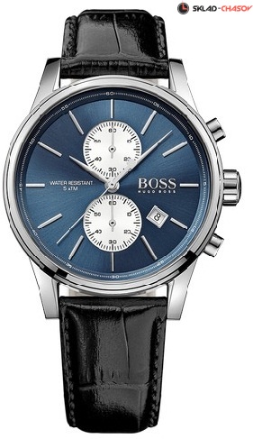 Кварцевый механизм, хронограф, функция fly-back, корпус из нержавеющей стали, диаметр корпуса 41 мм, минеральное стекло, ярко-синий циферблат, черный ремешок из натуральной кожи. Водозащита 5 АТМ.