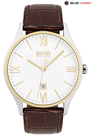 Кварцевый механизм, 3 стрелки, указатель даты, корпус из нержавеющей стали, золотистое IP покрытие, диаметр корпуса 44 мм, минеральное стекло, двухуровневый рифленый циферблат белого цвета, коричневый ремешок из натуральной кожи. Водозащита 3 АТМ.