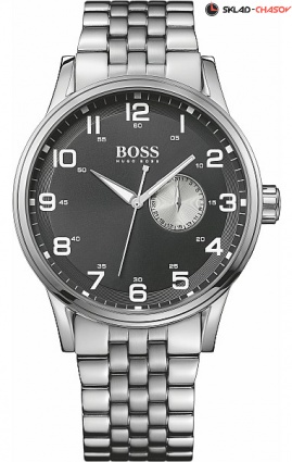 Aeroliner от Hugo Boss - типичный летный хронограф, выполненный в стилистике авиационных часов 1930-1940-х гг. Черный циферблат прекрасно читается как днем (благодаря крупной индикации и минимализму функционального наполнения), так и ночью – стрелки из вороненой стали, цифры и стрелки щедро покрыты люминесцентным составом. Апертура даты в положении 3 часа. Большая заводная головка. Диаметр корпуса 45мм. Стальной браслет. На заре самолетостроения и первых полетов часы были необходимы пилотам, как воздух. Они являлись навигационным инструментом, с их помощью рассчитывались скорость и расход горючего. Однако развитие технологий вскоре сделало весь набор функций, сосредоточенный на запястье, ненужным. После чего подобные модели превратились в модное течение, стабильно пользующееся популярностью у мужской аудитории.