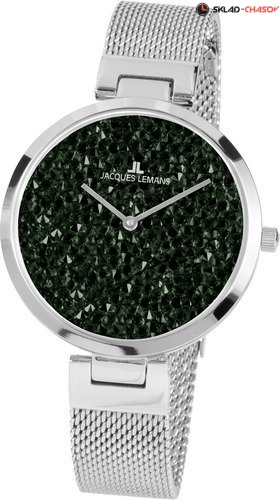 Волшебные женские часы из серии Milano от Jacques Lemans. Диаметр корпуса из прочной нержавеющей стали составляет 36 мм. Блестящий циферблат полностью покрыт кристаллами Swarovski темно-зеленого цвета. В часах c кварцевым механизмом установлено закаленное стекло Сrystex. Водонепроницаемость до 5ATM. Стальной браслет миланского плетения превосходно дополняет гламурный образ модели.