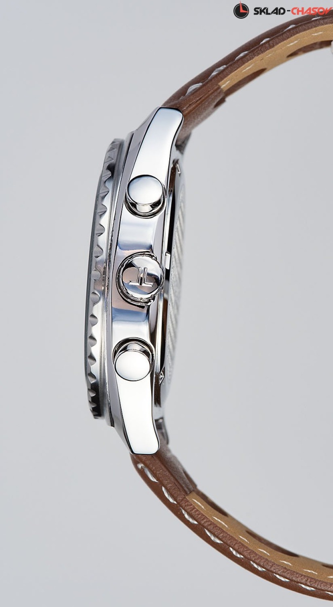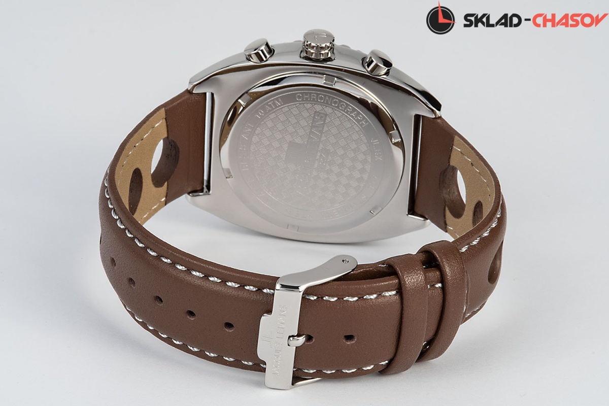 Необычная модель серии Retro от Jacques Lemans. Корпус из цельной нержавеющей стали с диаметром 41 мм обрамляет циферблат бежевого цвета. На нем находятся дополнительные индикаторы хронографа, выделенные полировкой. Окошко даты в позиции между 4 и 5 часами. В этих кварцевых часах установлено ударопрочное минеральное стекло Crystex. Задняя крышка с резьбой обеспечивает водостойкость 10 атмосфер. Коричневый ремешок из натуральной кожи дополнен застежкой-пряжкой. Запоминающиеся спортивный хронограф, выполненный в стиле «ретро».