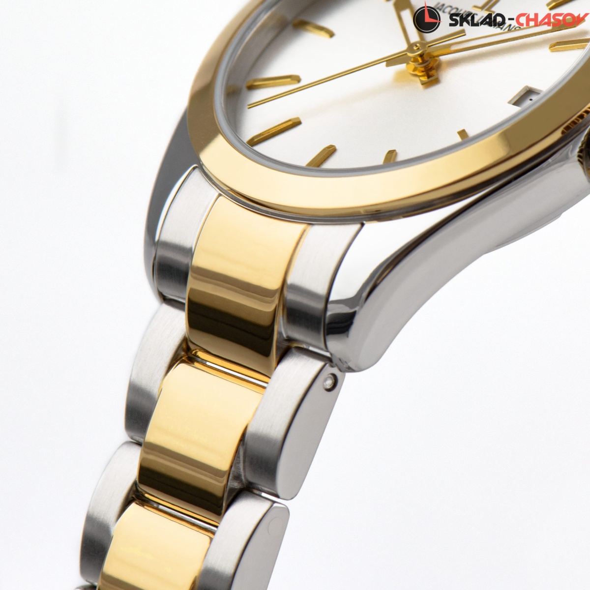 Кварцевая модель из коллекции Derby очаровывает своей лаконичностью. Корпус из прочной нержавеющей стали имеет диаметр 34 мм. Он обрамляет стальной циферблат с полировкой в виде солнечных лучей. На нем размещены хорошо читаемые риски и индикатор даты в позиции «3 часа». В модели установлено ударопрочное минеральное стекло Crystex. Повышенная водонепроницаемость равна 10 атмосфер. Браслет собран из литых стальных звеньев с надежной застежкой — клипсой, оснащенной дополнительной защитой от случайного расстегивания. Безель и центральные звнья браслета выделены с помощью PVD-покрытия из желтого золота. Эти часы — идеальный аксессуар, который будет уместен практически в любой ситуации, для любого выхода.