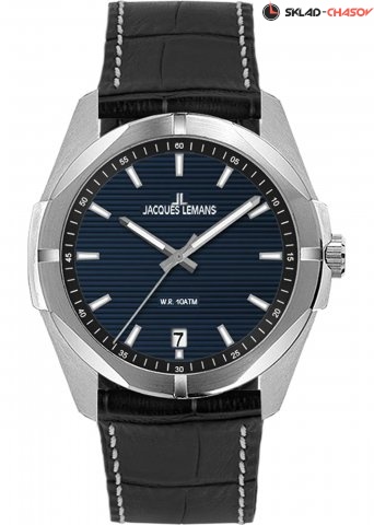 Наручные часы Jacques Lemans 1-2178C, коллекция Sport. Водозащита 10 ATM, ремень из натуральной кожи, кварцевый механизм. Диаметр корпуса 34 мм.