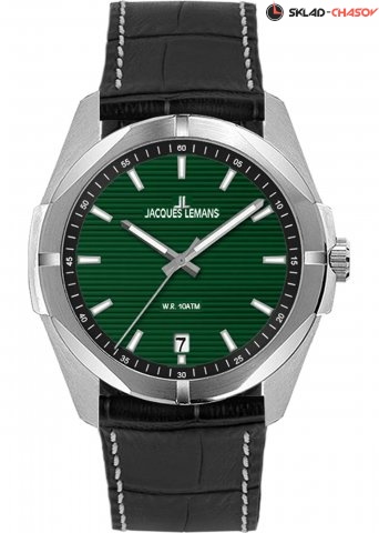 Наручные часы Jacques Lemans 1-2178D, коллекция Sport. Водозащита 10 ATM, ремень из натуральной кожи, кварцевый механизм. Диаметр корпуса 34 мм.