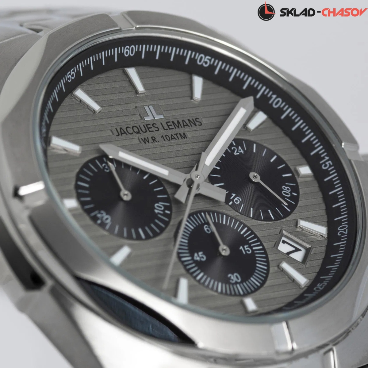 Наручные часы Jacques Lemans 1-2181F, коллекция Sport. Водозащита 10 ATM, стальной браслет, кварцевый механизм. Диаметр корпуса 42 мм.