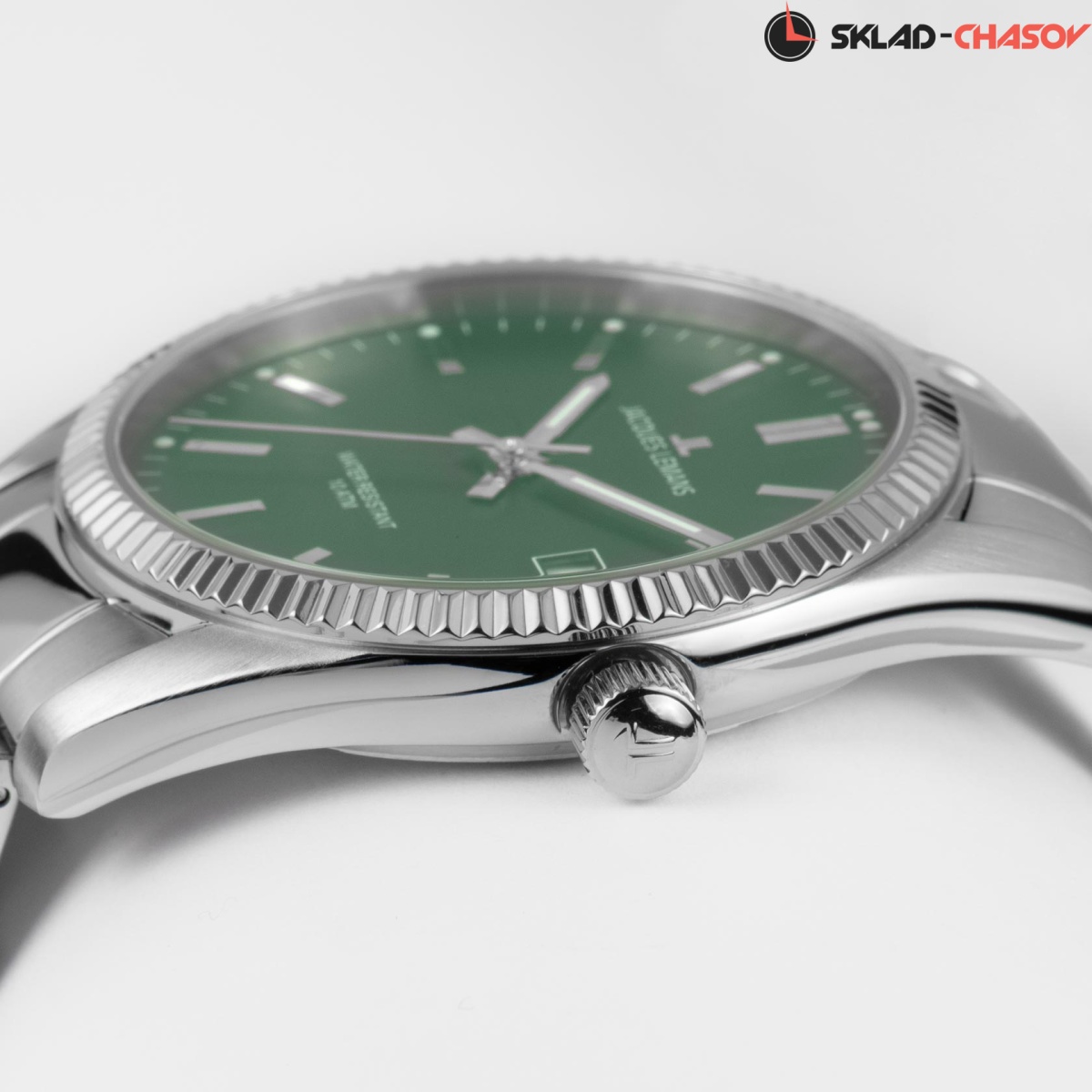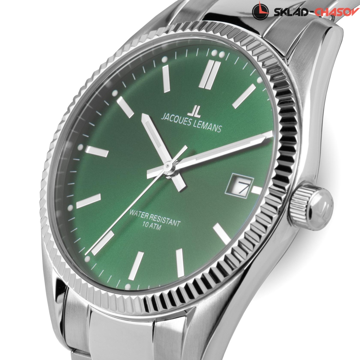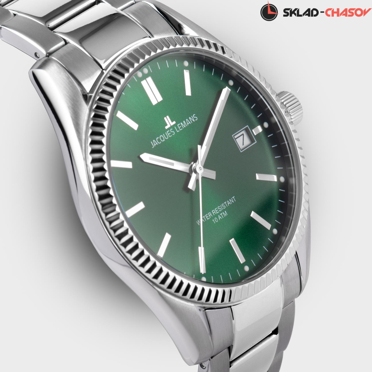 Знаковая серия часов 50-3 была выпущена в честь 50-летнего юбилея со дня основания компании Jacques Lemans. Одно из главных украшений корпуса из нержавеющей стали – ребристый безель с полировкой. Он обрамляет широкий зеленый циферблат с полировкой в виде солнечных лучей и с хорошо читаемыми стрелками и рисками, которые дополнительно выделены люминесцентным покрытием. Окошко даты расположилось на трех часах. Корпус достаточно тонкий, с эргономичными ушками, его диаметр равен 40 мм. Повышенная водостойкость составляет 10 атмосфер. Браслет из нержавеющей стали завершает удобная застежка-клипса с двумя боковыми кнопками и дополнительной защитой. Модель серии 50-3 – не только стильный аксессуар, но и отражение 50-летнего успешного опыта компании Jacques Lemans в создании часов.