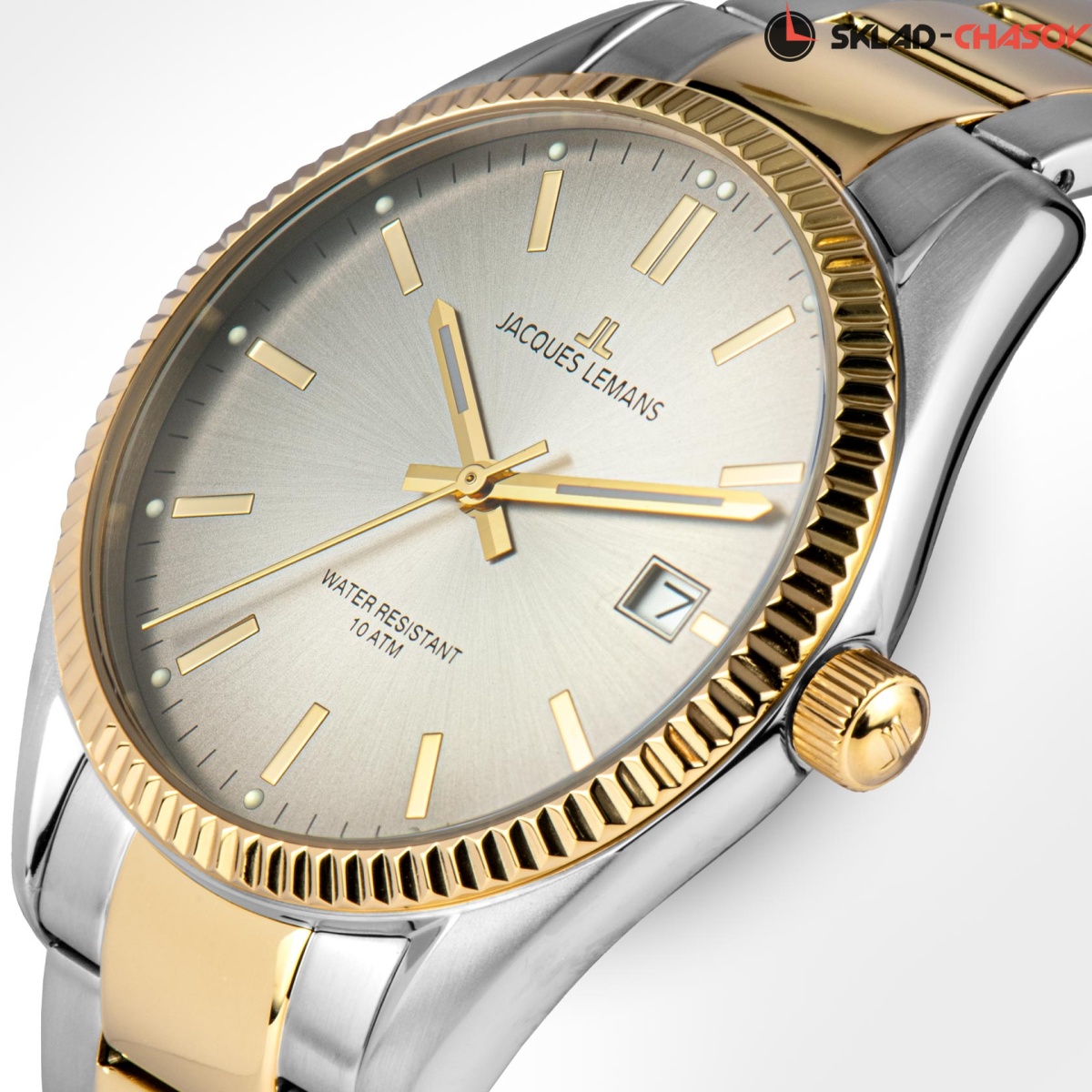 Знаковая серия часов 50-3 была выпущена в честь 50-летнего юбилея со дня основания компании Jacques Lemans. Одно из главных украшений корпуса из нержавеющей стали – ребристый безель с полировкой. Он обрамляет широкий зеленый циферблат с полировкой в виде солнечных лучей и с хорошо читаемыми стрелками и рисками, которые дополнительно выделены люминесцентным покрытием. Окошко даты расположилось на трех часах. Корпус достаточно тонкий, с эргономичными ушками, его диаметр равен 40 мм. Повышенная водостойкость составляет 10 атмосфер. Браслет из нержавеющей стали завершает удобная застежка-клипса с двумя боковыми кнопками и дополнительной защитой. Модель серии 50-3 – не только стильный аксессуар, но и отражение 50-летнего успешного опыта компании Jacques Lemans в создании часов.