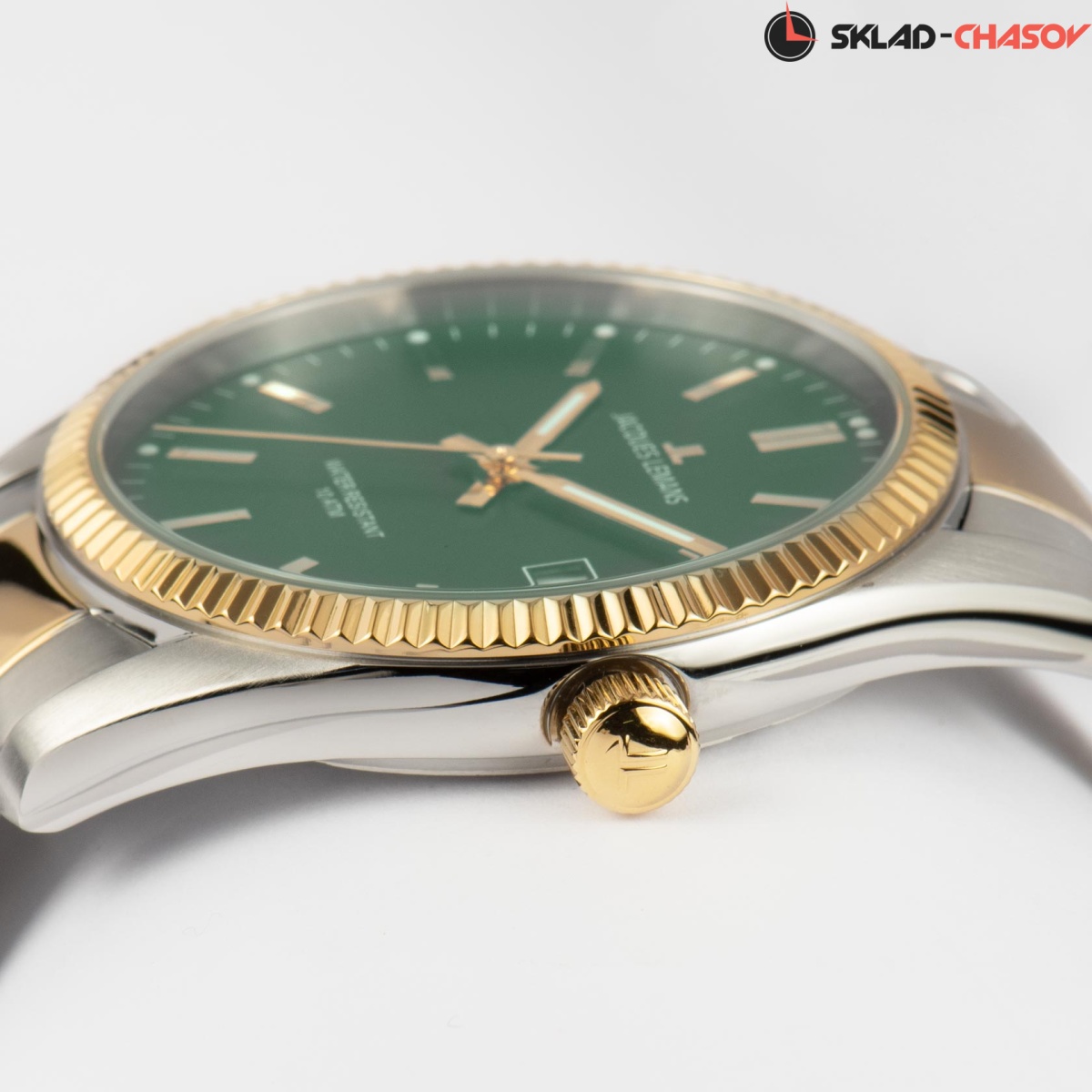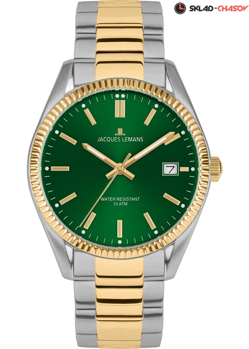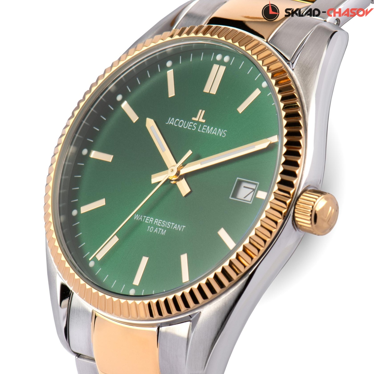 Знаковая серия часов 50-3 была выпущена в честь 50-летнего юбилея со дня основания компании Jacques Lemans. Одно из главных украшений корпуса из нержавеющей стали – ребристый безель с полировкой. Он обрамляет широкий зеленый циферблат с полировкой в виде солнечных лучей и с хорошо читаемыми стрелками и рисками, которые дополнительно выделены люминесцентным покрытием. Окошко даты расположилось на трех часах. Корпус достаточно тонкий, с эргономичными ушками, его диаметр равен 40 мм. Повышенная водостойкость составляет 10 атмосфер. Браслет из нержавеющей стали завершает удобная застежка-клипса с двумя боковыми кнопками и дополнительной защитой. Модель серии 50-3 – не только стильный аксессуар, но и отражение 50-летнего успешного опыта компании Jacques Lemans в создании часов.