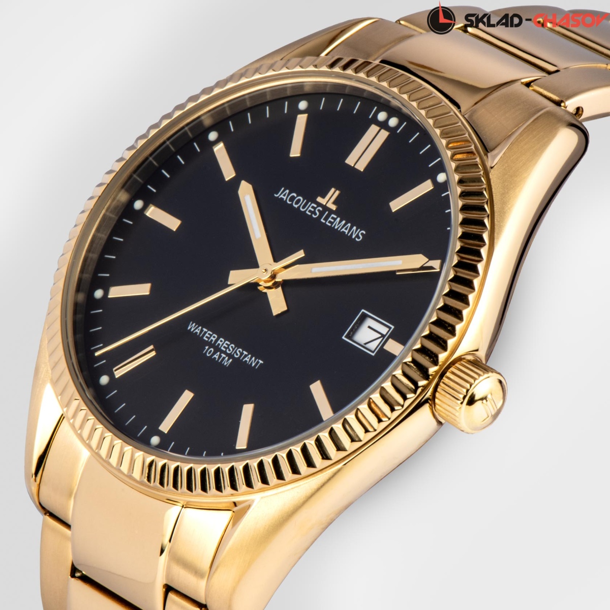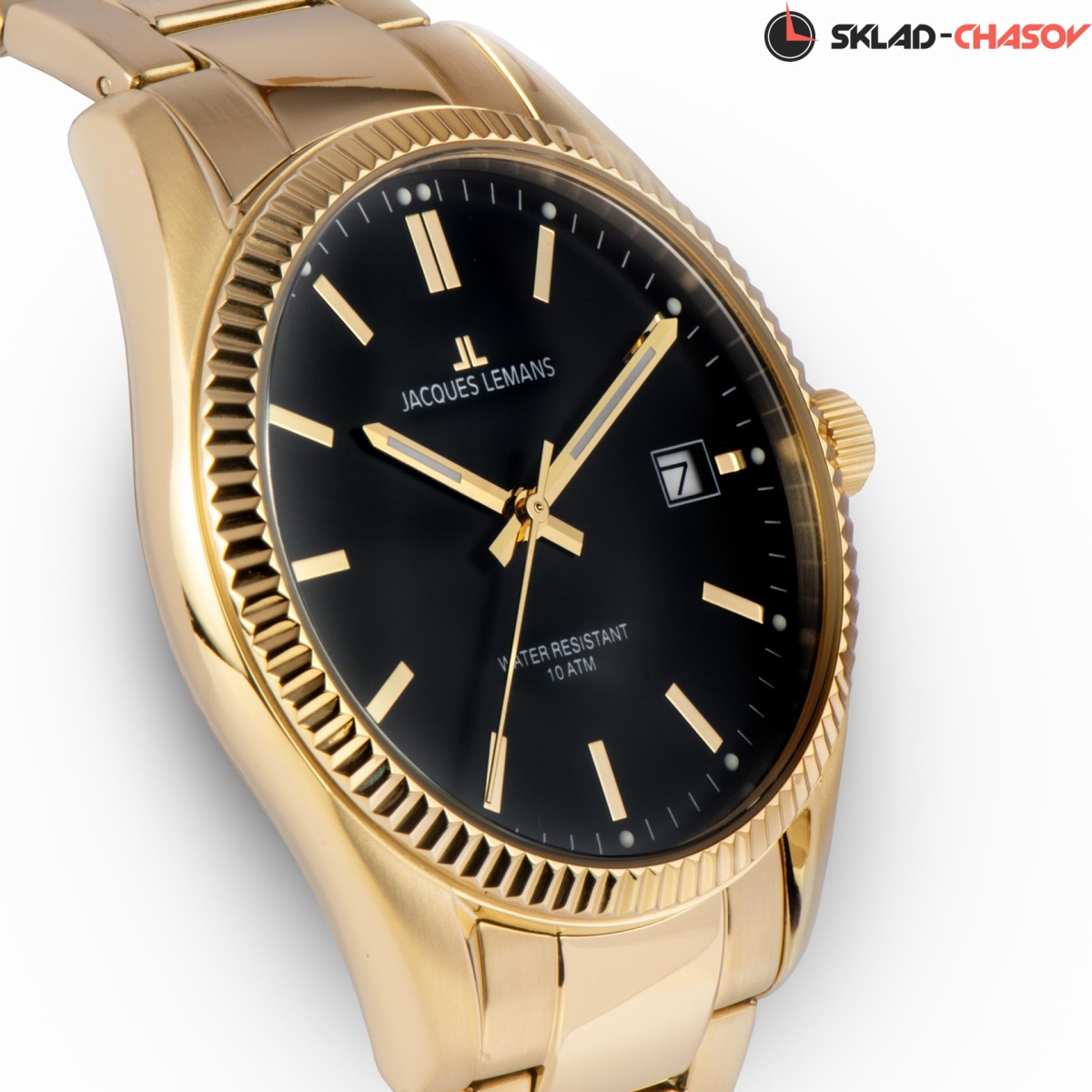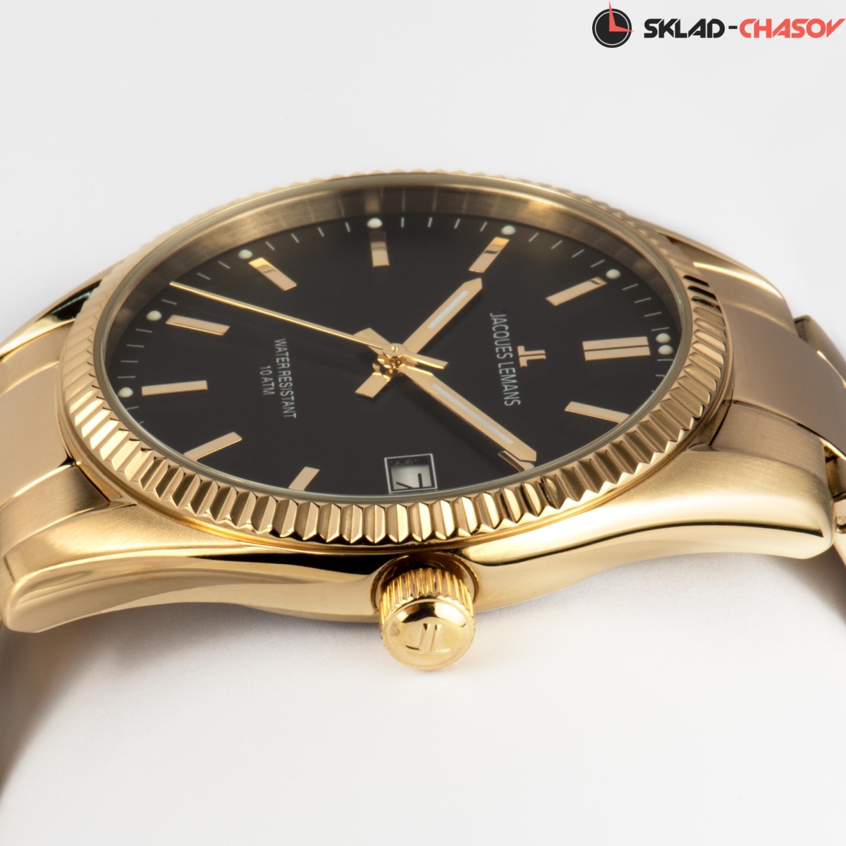 Знаковая серия часов 50-3 была выпущена в честь 50-летнего юбилея со дня основания компании Jacques Lemans. Одно из главных украшений корпуса из нержавеющей стали – ребристый безель с полировкой. Он обрамляет широкий зеленый циферблат с полировкой в виде солнечных лучей и с хорошо читаемыми стрелками и рисками, которые дополнительно выделены люминесцентным покрытием. Окошко даты расположилось на трех часах. Корпус достаточно тонкий, с эргономичными ушками, его диаметр равен 40 мм. Повышенная водостойкость составляет 10 атмосфер. Браслет из нержавеющей стали завершает удобная застежка-клипса с двумя боковыми кнопками и дополнительной защитой. Модель серии 50-3 – не только стильный аксессуар, но и отражение 50-летнего успешного опыта компании Jacques Lemans в создании часов.