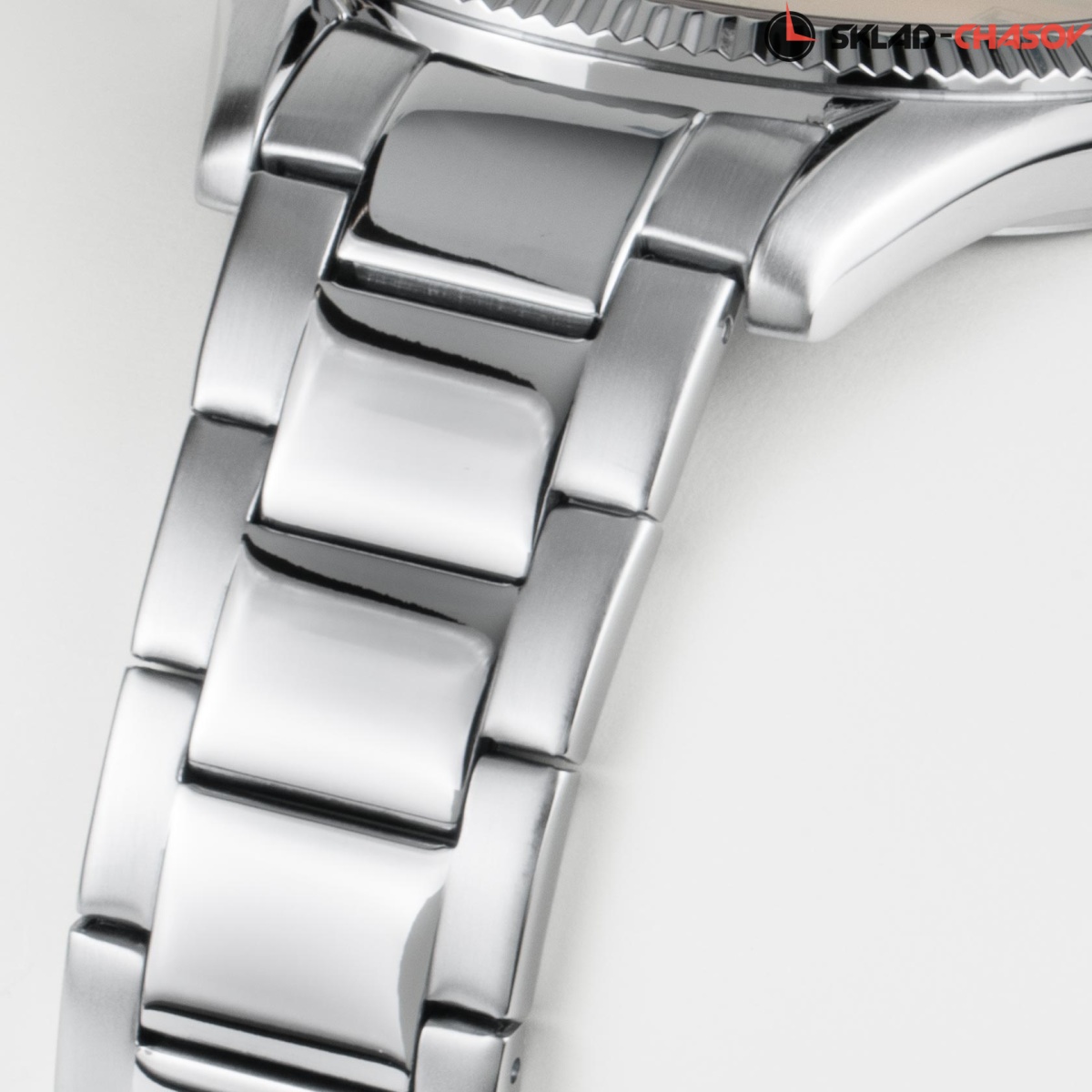 Знаковая серия часов 50-4 была выпущена в честь 50-летнего юбилея со дня основания компании Jacques Lemans. Одно из главных украшений корпуса из нержавеющей стали – ребристый безель с полировкой. Он обрамляет широкий розовый циферблат с полировкой в виде солнечных лучей и с хорошо читаемыми стрелками и рисками, которые дополнительно выделены люминесцентным покрытием. Окошко даты расположилось на трех часах. Корпус достаточно тонкий, с эргономичными ушками, его диаметр равен 34 мм. Повышенная водостойкость составляет 10 атмосфер. Браслет из нержавеющей стали завершает удобная застежка-клипса с двумя боковыми кнопками и дополнительной защитой. Модель серии 50-4 – не только стильный аксессуар, но и отражение 50-летнего успешного опыта компании Jacques Lemans в создании часов.