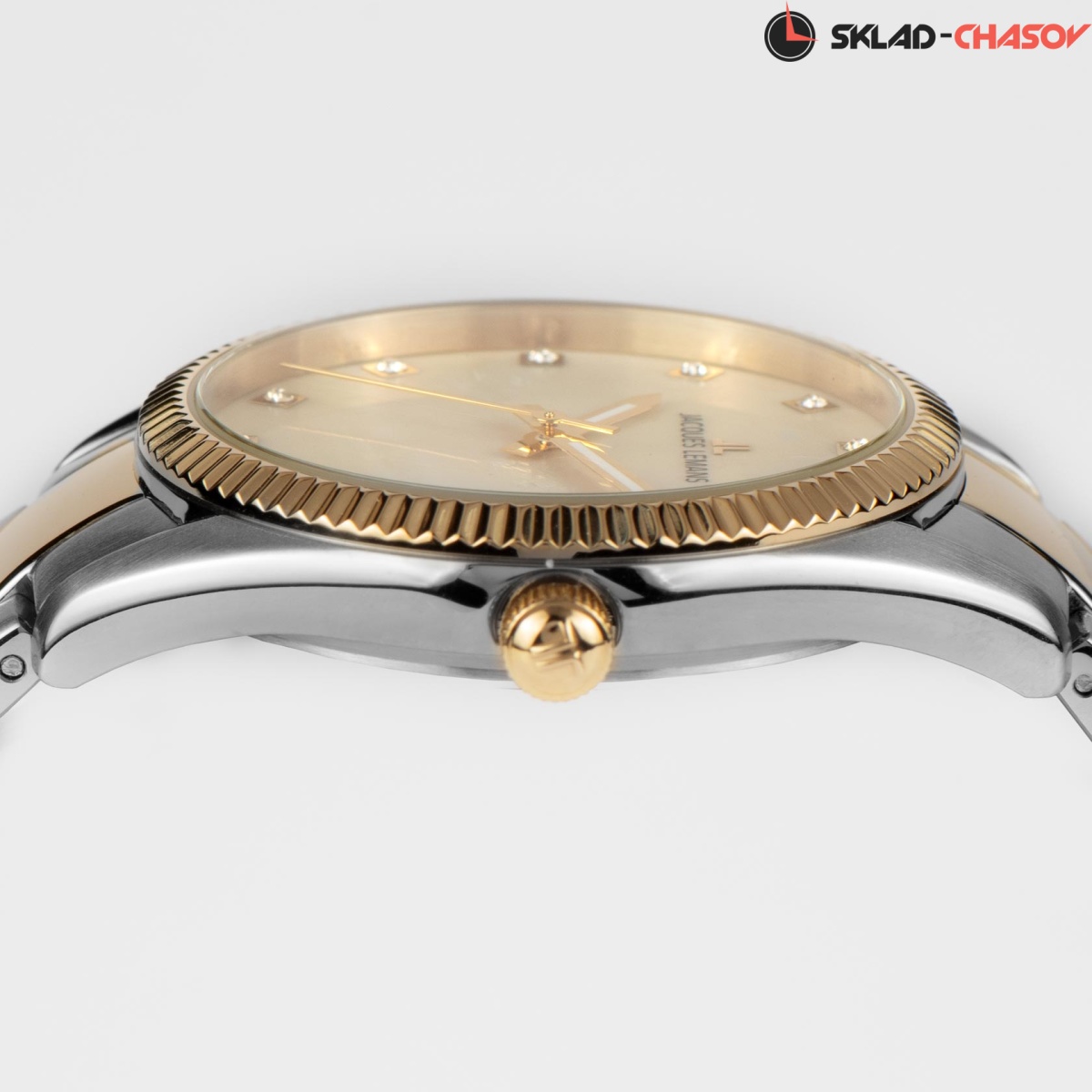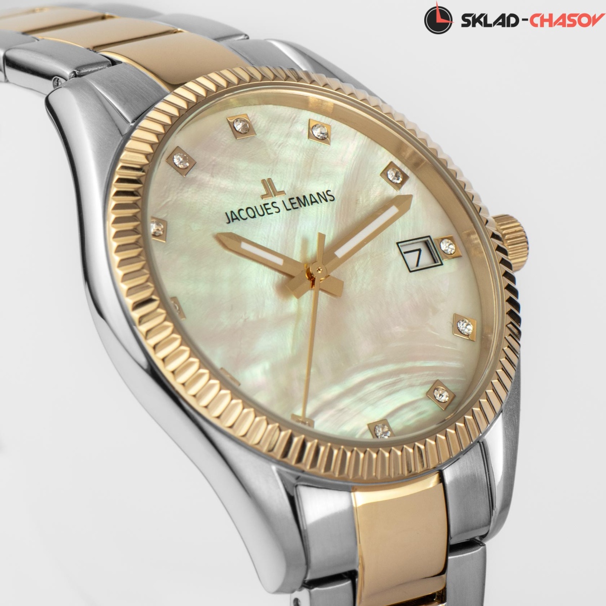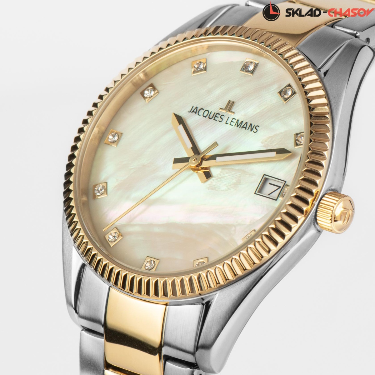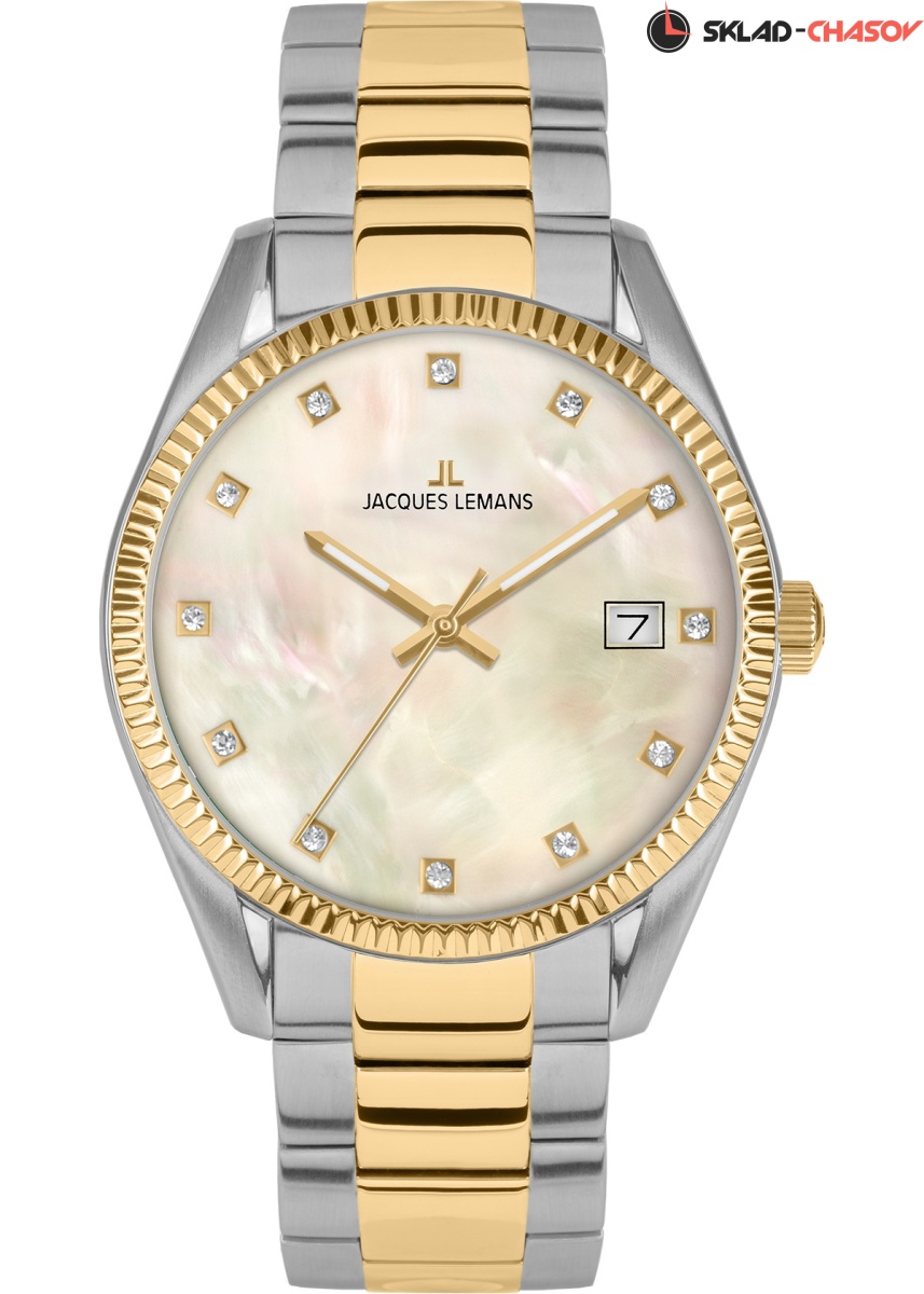 Знаковая серия часов 50-4 была выпущена в честь 50-летнего юбилея со дня основания компании Jacques Lemans. Одно из главных украшений корпуса из нержавеющей стали – ребристый безель с PVD-покрытием из желтого золота и полировкой. Он обрамляет широкий циферблат из натурального перламутра с хорошо читаемыми стрелками и 12-ю кристаллами, каждый в индивидуальной рамке. Окошко даты расположилось на трех часах. Корпус достаточно тонкий, с эргономичными ушками, его диаметр равен 34 мм. Повышенная водостойкость составляет 10 атмосфер. Браслет из нержавеющей стали завершает удобная застежка-клипса с двумя боковыми кнопками и дополнительной защитой. Модель серии 50-4 – не только стильный аксессуар, но и отражение 50-летнего успешного опыта компании Jacques Lemans в создании часов.