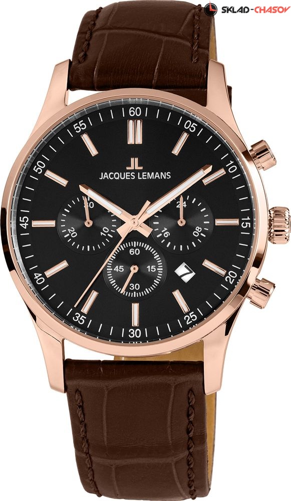 Ремешок из натуральной кожи c прошивкой, которая повышает его стойкость к износу. • Надежная застежка-пряжка украшена логотипом бренда Jacques Lemans.