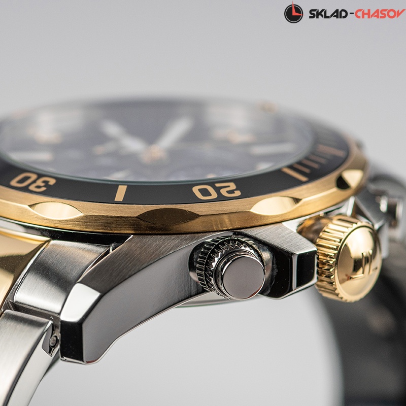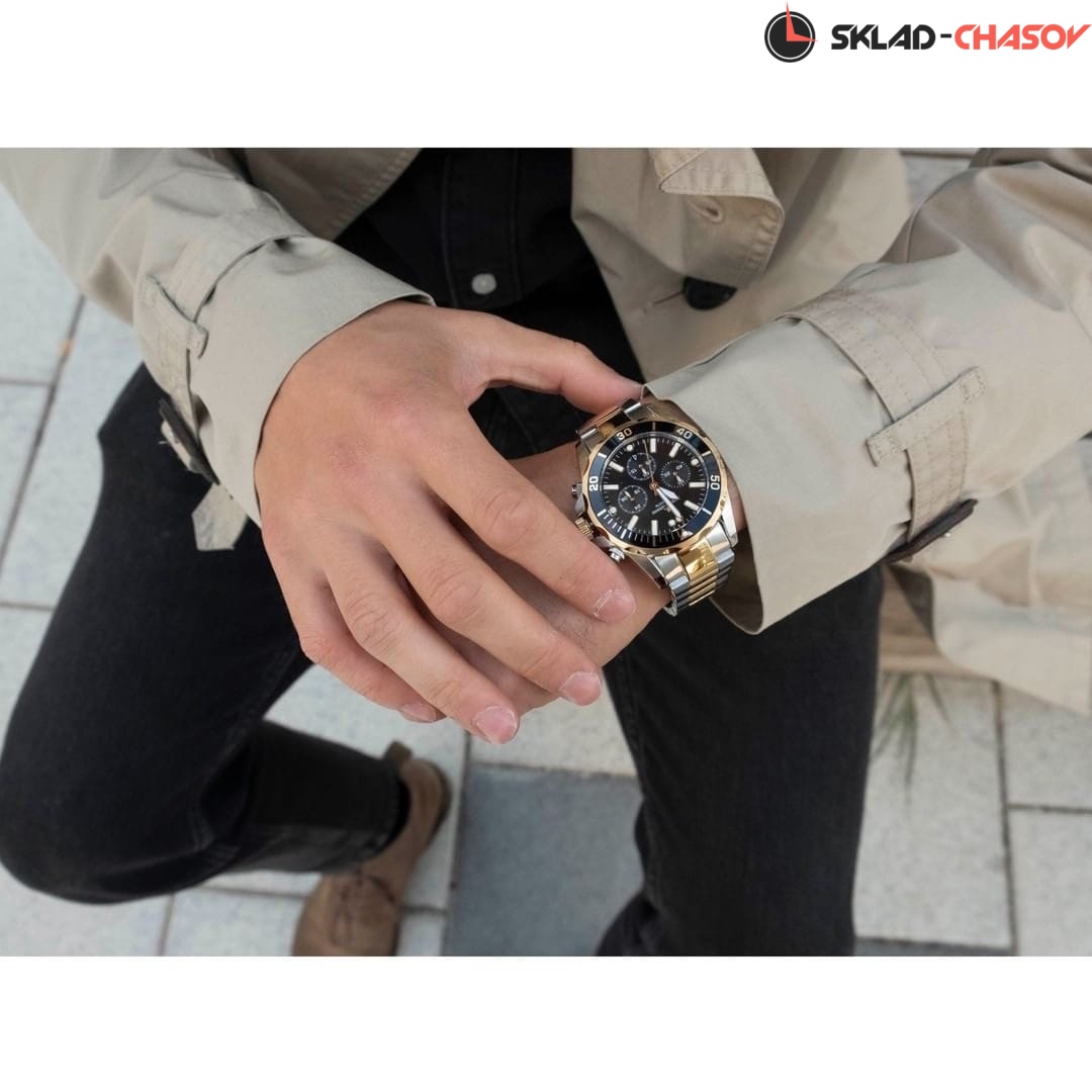 Стильный спортивный дизайн этого хронографа станет лучшим дополнением к образу успешного мужчины, ведущего динамичный образ жизни. Liverpool. Часы-хронограф с секундомером. Заводная головка с защитой. Окошко даты в положении 6 часов. Вращающийся безель. Браслет с раскладывающейся застежкой.