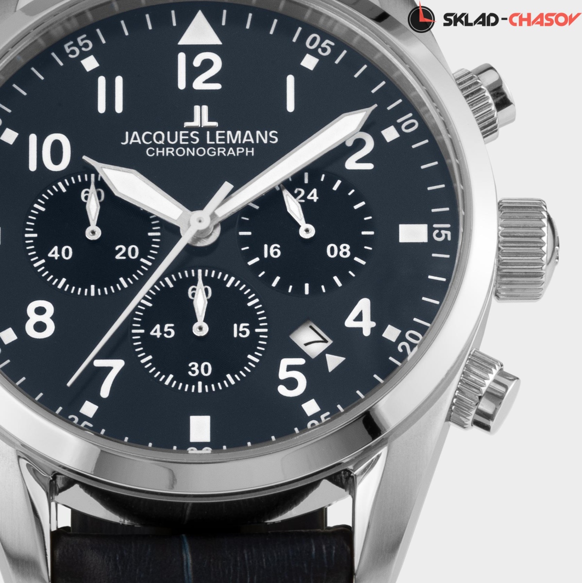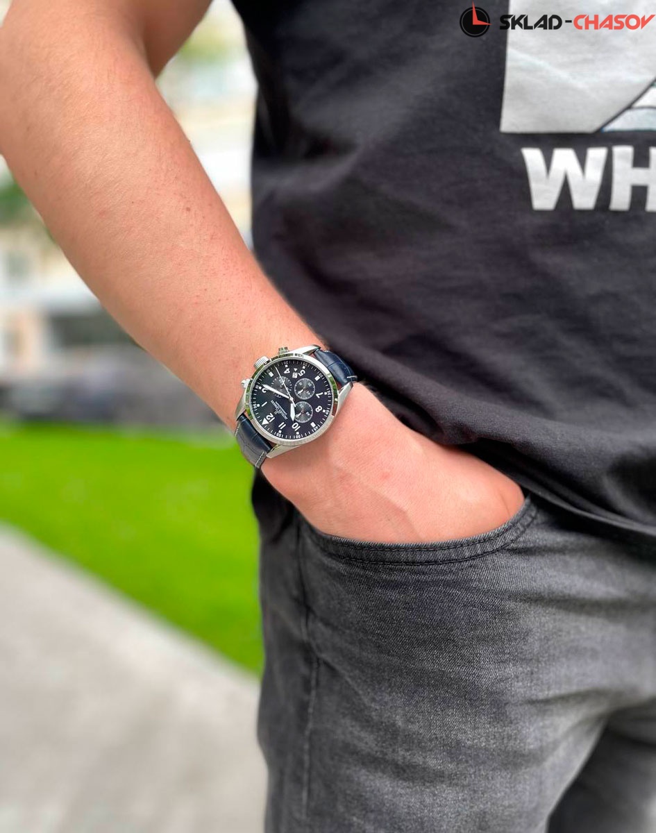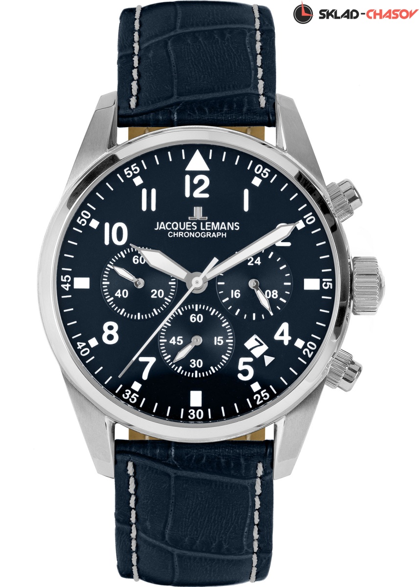 Хронограф с кварцевым механизмом и повышенной водостойкостью 10 атмосфер — это надежный и универсальный аксессуар, уместный в любом образе, независимо от времени года и влияний моды. Корпус часов сделан из нержавеющей стали. Этот материал обладает гипоаллергенными свойствами и стойкостью к коррозии. На синем циферблате хронографа нашлось место для трех дополнительных индикаторов (минутный и секундный накопитель, индикатор 24-х часов) и окошка даты. Стрелки и крупные арабские цифры покрыты люминесцентным составом, который светится в темноте. В часах установлено минеральное стекло Crystex. Ремешок синего цвета из натуральной кожи дополнен тиснением и контрастной прошивкой.