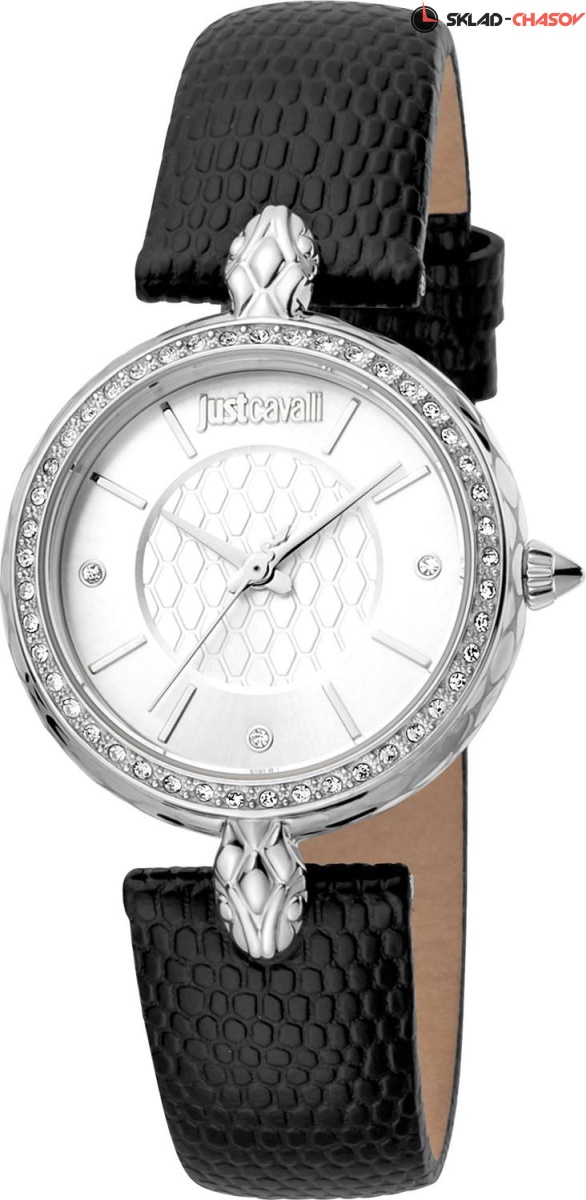 Изысканность и неповторимость стиля от известного бренда. Эти часы - идеальный и незаменимый аксессуар, дополняющий ваш образ. Восхитительные женские часы Glam Chic с круглым стальным корпусом. Корпус по бокам украшен гравировкой. Ушки крепления корпуса выполнены в виде головы змеи. Двухуровневый циферблат украшен надписью Just Cavalli. Метки на циферблате в виде штрихов и точек, украшеных кристаллами Сваровски. Заводная головка конусообразной формы. Кожаный ремешок с классической застежкой.