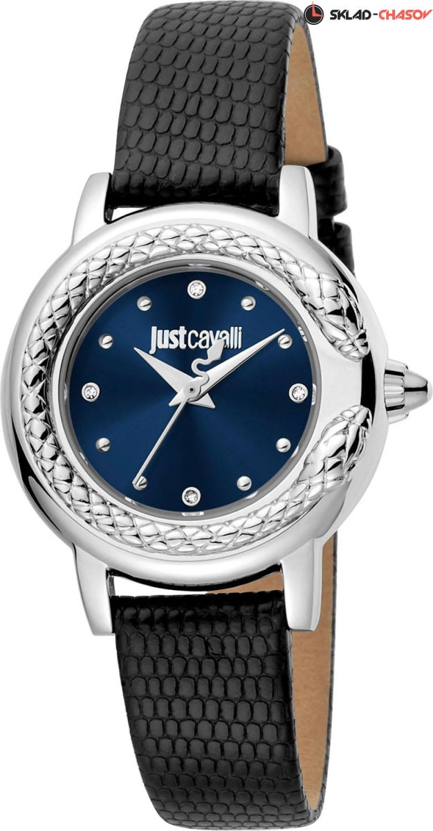 Изумительный дизайн этих часов обеспечит вас вниманием окружающих на долгое время. Мода, которая доступна. Эффектные часы Glam Chic с круглым стальным корпусом. Корпус украшен гравировкой круглой змеи с двумя головами. Циферблат выполнен по технологии Sunray (солнечные лучи) и украшен надписью Just Cavalli. Метки на циферблате в виде точек, украшены кристаллами Сваровски. Заводная головка конусообразной формы. Кожаный ремешок с классической застежкой.