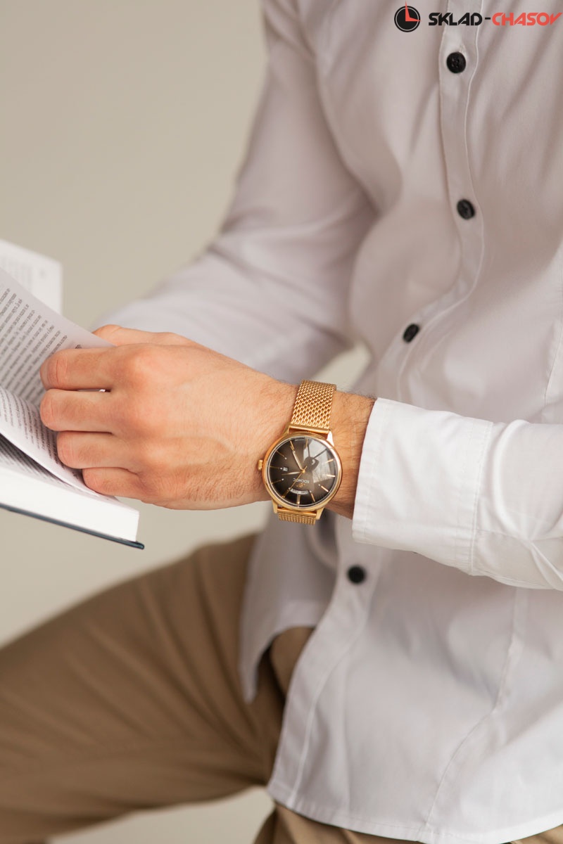 Часы установлены на стальной браслет миланского плетения, что обеспечивает простую регулировку длины браслета под нужный размер, прочность и легкость. Специальные крепежи позволяют заменить ремешок/браслет на часах самостоятельно. Больше не нужно искать универсальные варианты, вы можете приобрести сразу несколько ремней и браслетов.