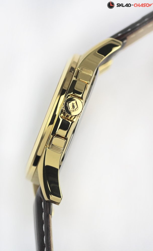 Мужской кварцевый хронограф коллекции Pilotage создан в квази-спортивном стиле. Корпус часов изготовлен из высоколегированной нержавеющей стали 316L с PVD-покрытием желтого золота. Для создателей часов важны качество и практичность каждого элемента, несмотря на усложнение производственного процесса. Поэтому на корпусе часов сочетаются матированные и полированные элементы. Боковая часть корпуса оснащена защитой заводной головки от случайных ударов и механических воздействий. Кнопки хронографа рифленые, что делает их использование удобным и практичным. Дополняет модель черный ремешок из натуральной кожи с тиснением под кожу крокодила. Раскладная застежка с фиксаторами защищает часы от падения.