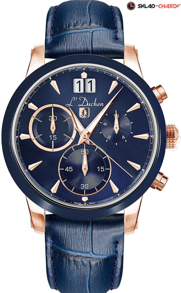 Сапфировое стекло имеет антибликовое покрытие. Заводная головка и кнопки хронографа рельефные, что делает их использование удобным и практичным. Водонепроницаемость часов – 10 атмосфер. Завинчивающаяся задняя крышка обеспечивает данный уровень защиты от воды. В часах установлен ремешок из натуральной кожи синего цвета с прошивкой. К корпусу он крепится с помощью винтов, а на запястье его удерживает надежная и удобная в использовании застежка-бабочка с двумя боковыми кнопками. Логотип марки - «дубовый лист», который олицетворяет мудрость и долговечность - расположен на задней крышке корпуса часов и застежке.
