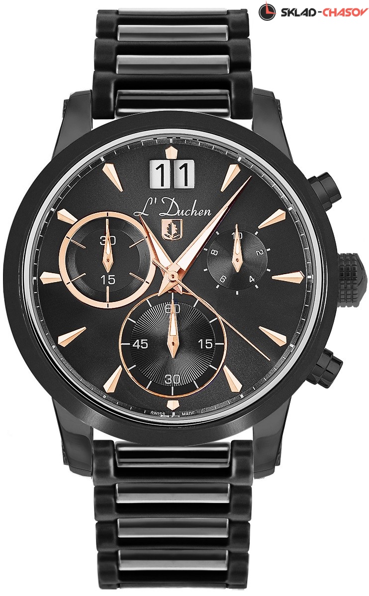 Сапфировое стекло имеет антибликовое покрытие. Заводная головка и кнопки хронографа рельефные, что делает их использование удобным и практичным. Водонепроницаемость часов – 10 атмосфер. Завинчивающаяся задняя крышка обеспечивает данный уровень защиты от воды. В часах установлен браслет из двух видов звеньев: стальных и керамических. К корпусу он крепится с помощью винтов, а на запястье его удерживает надежная и удобная в использовании застежка-бабочка с двумя боковыми кнопками. Логотип марки - «дубовый лист», который олицетворяет мудрость и долговечность - расположен на задней крышке корпуса часов и застежке.