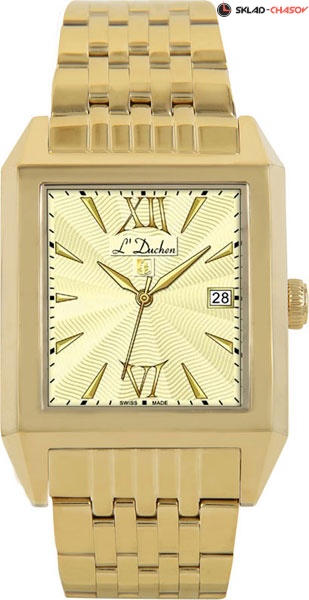 Дизайнеры марки L'Duchen, разрабатывая мужские часы коллекции Lumiere, позаботились не только о достойном внешнем виде модели, но о практичности в использовании. Прямоугольный корпус изогнут и имеет анатомическую форму. Часы удобно ложатся на руке. Полированные корпус и браслет часов выполнены из высоколегированной нержавеющей стали 316L с PVD-покрытием из желтого золота. Грани корпуса интересно создают переливы света и притягивают внимание. Желтый циферблат декорирован волнообразным гильоше. Указатель даты расположен на 3 часах и украшен стальной окантовкой. Часовая и минутная стрелки сделаны в мечеобразной форме. Они смотрятся объемными и хорошо читаются. Циферблат защищен сапфировым стеклом выпуклой формы, что более сложно в исполнении.