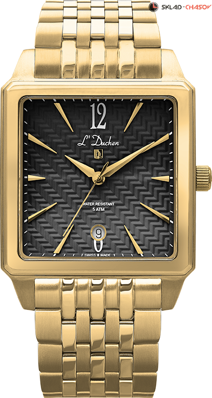 Корпус и браслет часов декорированы PVD-покрытием из желтого золота.
