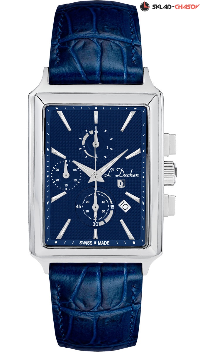 Сапфировое стекло, практически прозрачное, защищает циферблат от внешних воздействий. На внутренней его части — антибликовое покрытие. Оригинальное сочетание зеркальной полировки и матирования позволяет по-новому взглянуть на классическую форму корпуса в виде прямоугольника со скошенными углами. Корпус сделан из гипоаллергенной нержавеющей стали 316L, а ремешок — из натуральной кожи синего цвета. Застежка-бабочка легко раскладывается при нажатии на две боковые кнопки и надежно удерживает аксессуар на запястье.