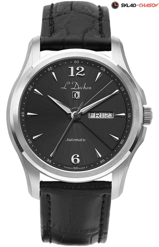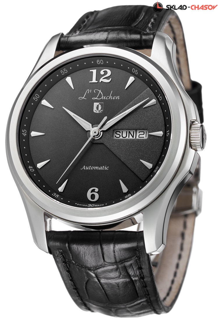 • Центральные часовая, минутная и секундная стрелки, дата и день недели в двойной апертуре.