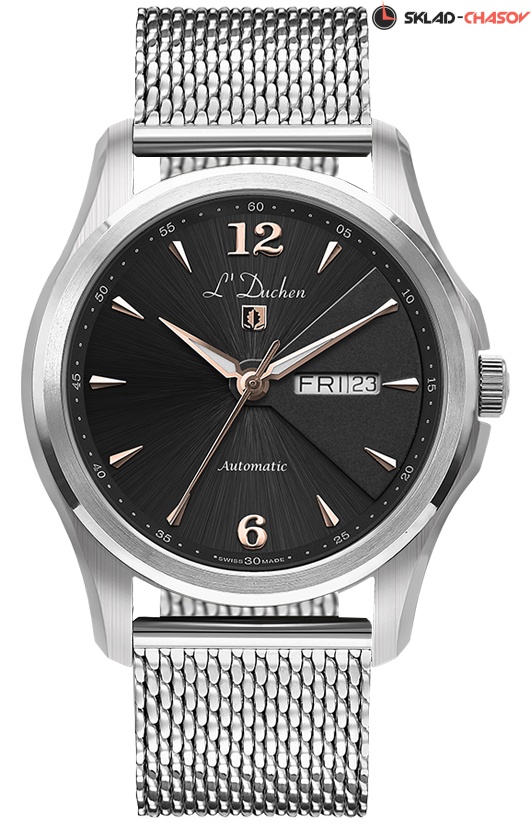 • Центральные часовая, минутная и секундная стрелки, дата и день недели в двойной апертуре.