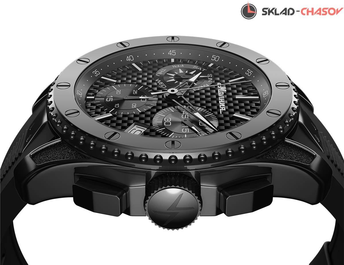 Массивный корпус с крупным фактурным циферблатом привлекает внимание. Комфортные, функциональные и стильные, эти часы подойдут тем, кто с утра спешит на деловую встречу, а вечером садится в самолет, чтобы провести выходные на гребне волны. Швейцарский кварцевый механизм не подведет в любом часовом поясе, карбоновый циферблат прослужит много лет, а силиконовый ремешок будет крепко, но мягко держаться на руке.