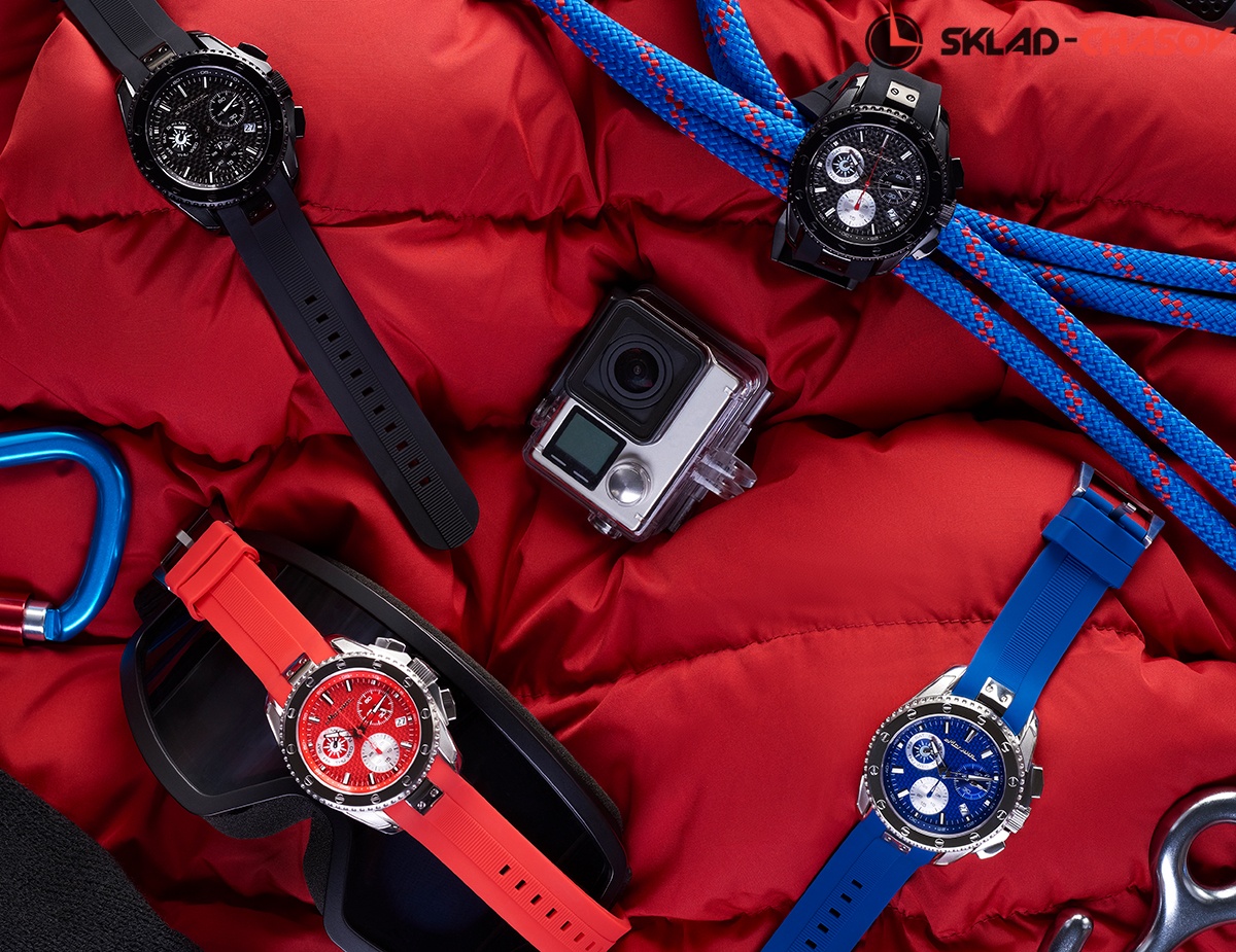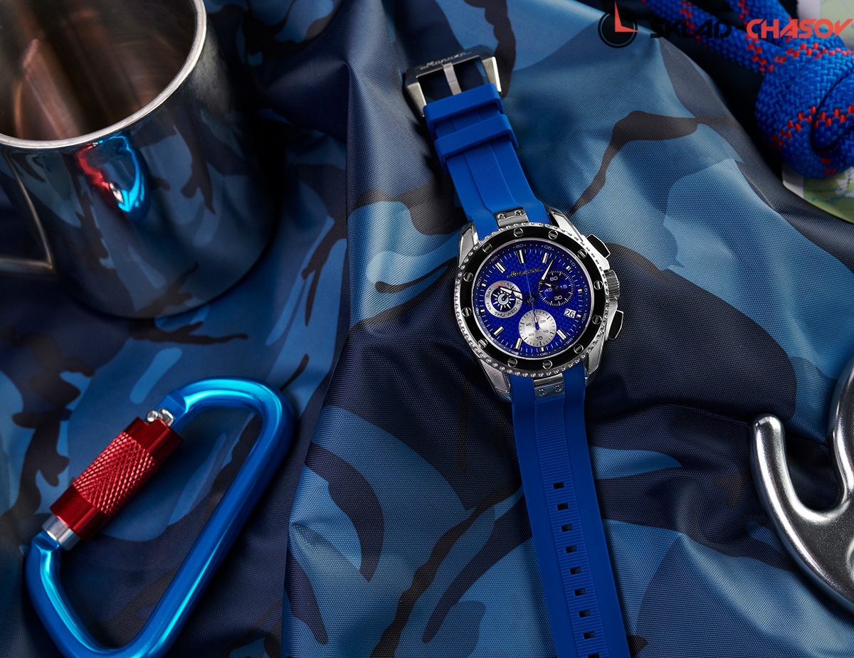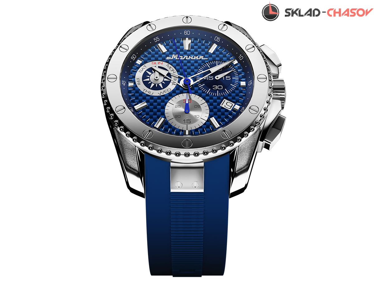 Массивный корпус с крупным фактурным циферблатом привлекает внимание. Комфортные, функциональные и стильные, эти часы подойдут тем, кто с утра спешит на деловую встречу, а вечером садится в самолет, чтобы провести выходные на гребне волны. Швейцарский кварцевый механизм не подведет в любом часовом поясе, карбоновый циферблат прослужит много лет, а силиконовый ремешок будет крепко, но мягко держаться на руке.