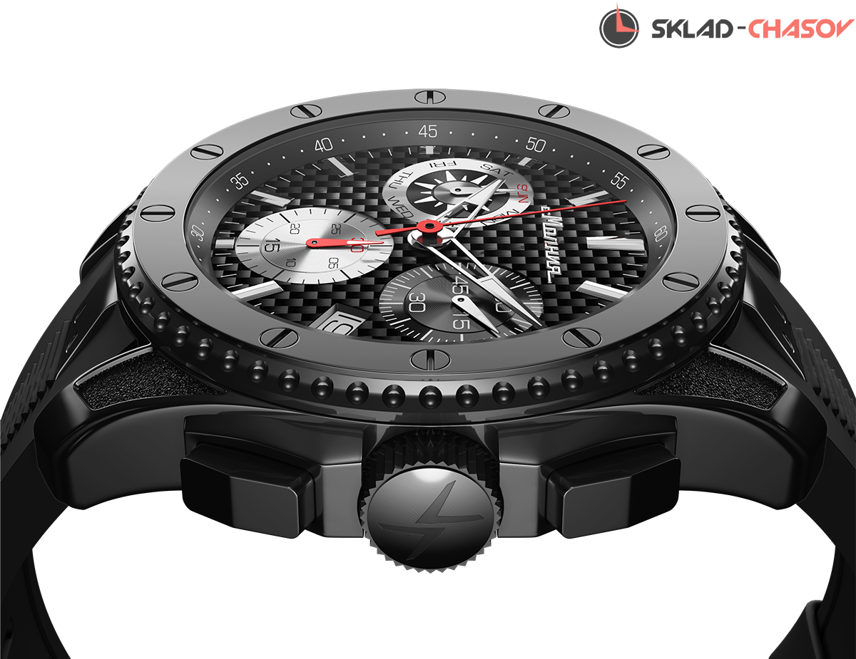 Массивный корпус с крупным фактурным циферблатом привлекает внимание. Комфортные, функциональные и стильные, эти часы подойдут тем, кто с утра спешит на деловую встречу, а вечером садится в самолет, чтобы провести выходные на гребне волны. Швейцарский кварцевый механизм не подведет в любом часовом поясе, карбоновый циферблат прослужит много лет, а силиконовый ремешок будет крепко, но мягко держаться на руке.
