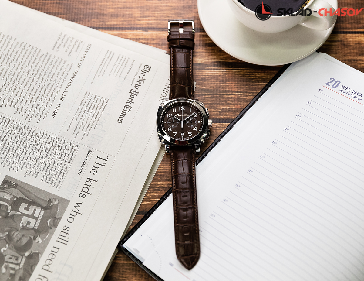 Облик оригинального хронографа позаимствован у авиационных часов последнего поколения, выпускаемых «Молнией» для современных самолетов: Су-30МКИ, Су-30СМ, L- 410, ДА-42Т. Часы из современной приборной панели самолетов интегрированы в неординарный корпус и обеспечивают удобное управление всеми функциями надежного инструмента измерения времени. Механизм легкой замены позволяет удобно чередовать винтажный кожаный ремешок со спортивным силиконовым. Это делает часы идеальным вариантом для апологетов активного образа жизни.
