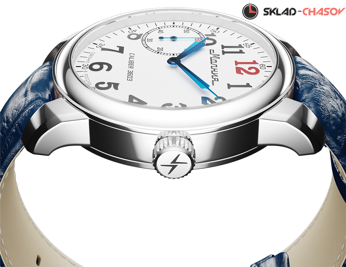 Часы оснащены легендарным противоударным калибром 3603 устойчивым к ударам и высокими эксплуатационным нагрузкам. Классический механизм производства часовой мануфактуры «Молния». 3603 – настоящая классика «Молнии», один из лучших механизмов, произведенных в России. В основу легендарного механизма легла усовершенствованная конструкция калибра бренда Corterbert. Под этой маркой производились механизмы, которые закупали для многих люксовых часовых брендов.