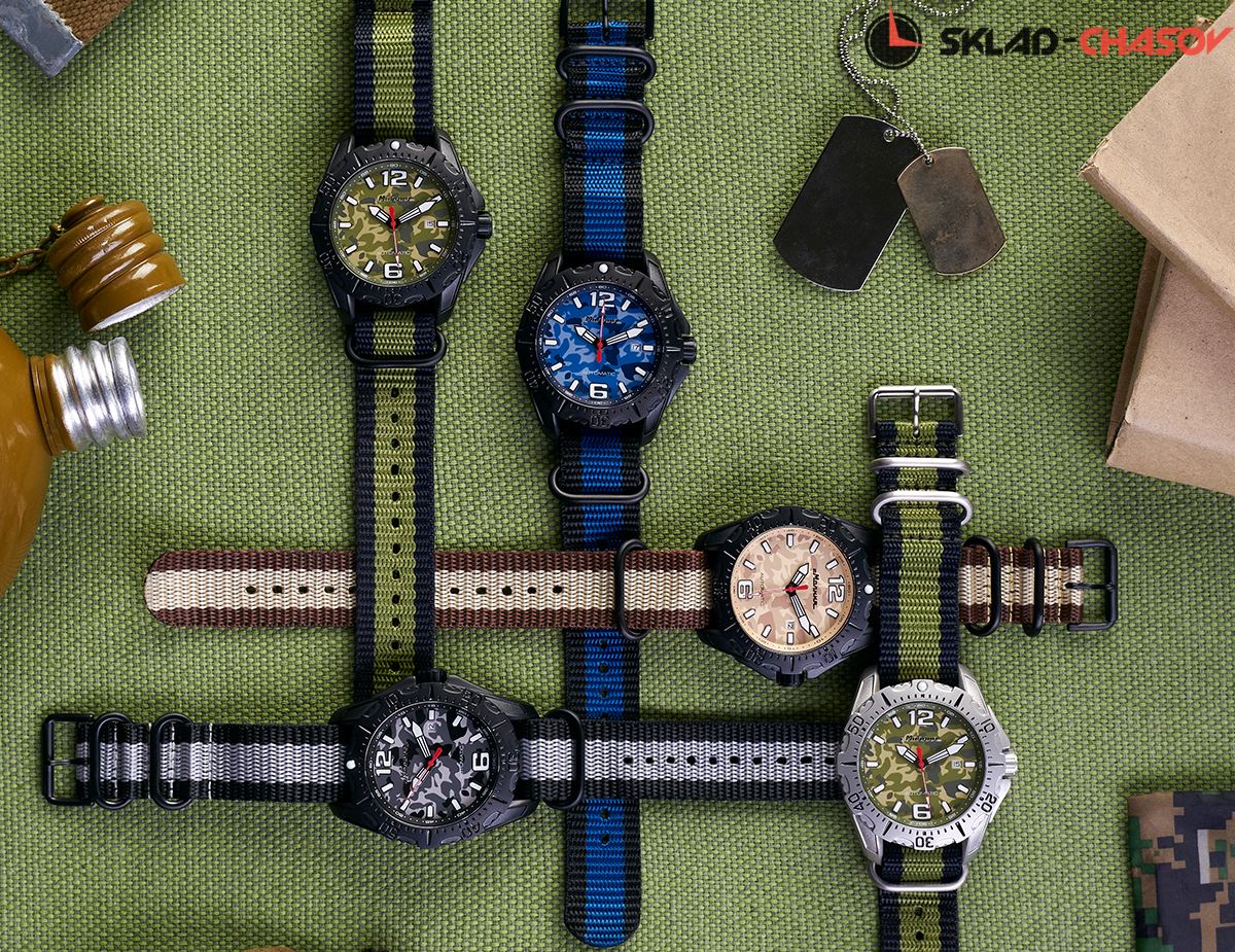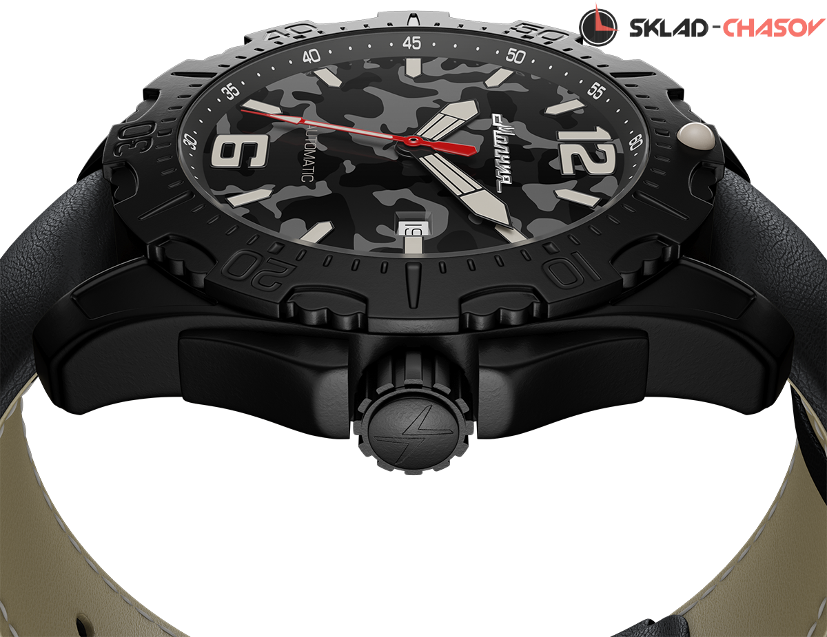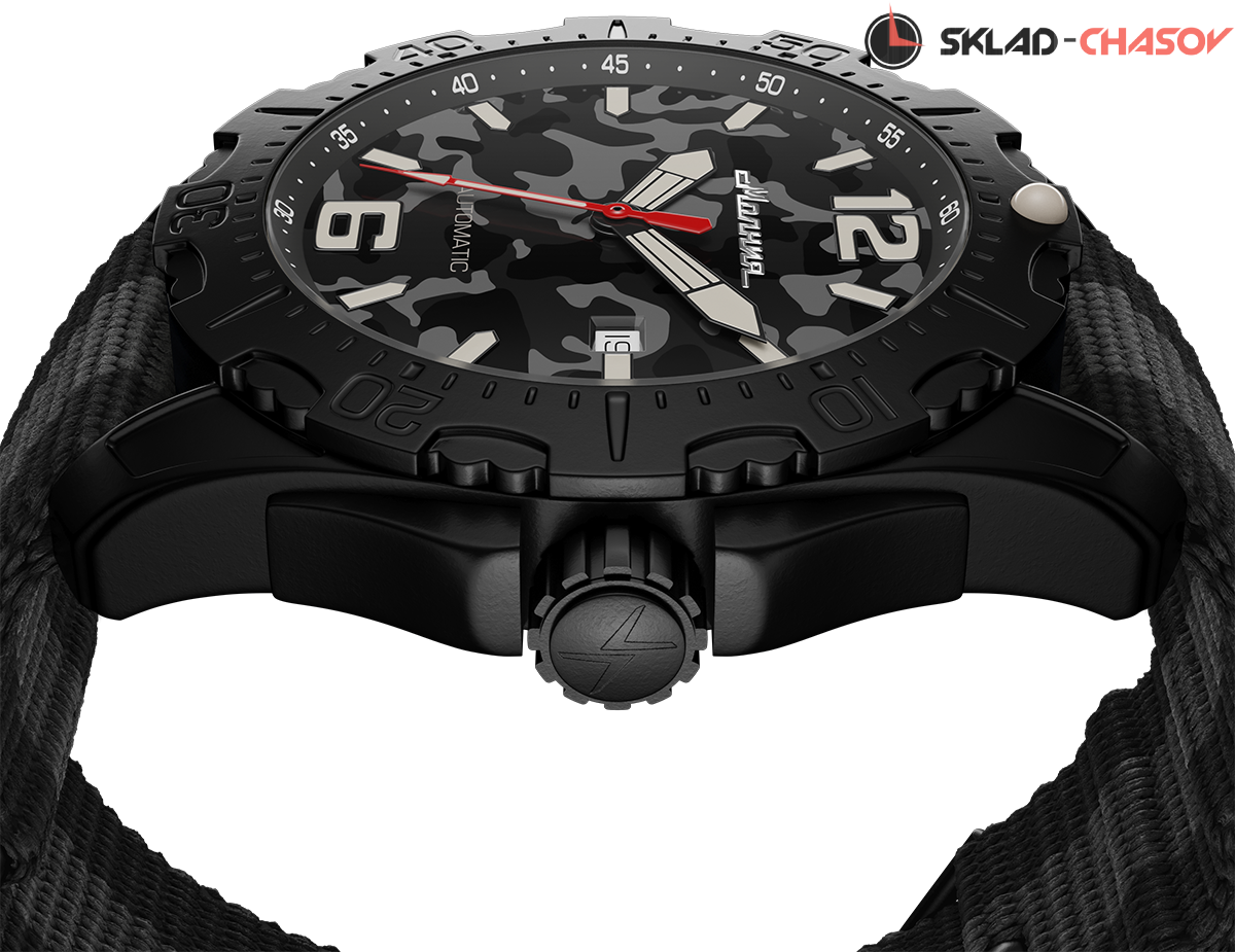 При создании данных часов мы постарались, чтобы модель получилась не только эффектной, но и функциональной. Конструкция нейлонового ремешка заимствована у профессиональных военных и обеспечивает надежную фиксацию, крупные люминесцентные стрелки легко увидеть в темноте, хорошая водостойкость 10 АТМ, поворотный безель, позволяющий засекать промежутки времени и дополнительный кожаный ремешок. Такие часы оценят охотники, путешественники, спортсмены и другие энтузиасты, которые чередуют мегаполис с активным отдыхом на природе.