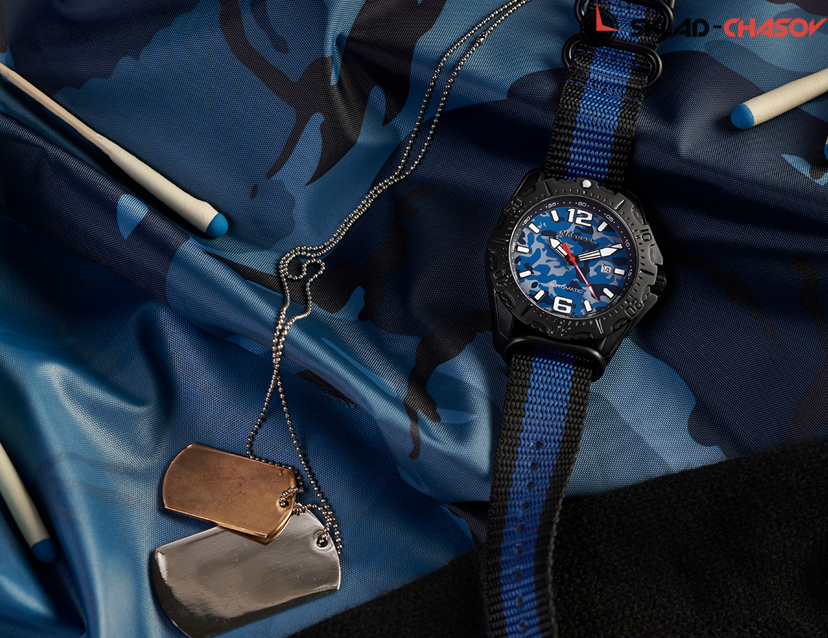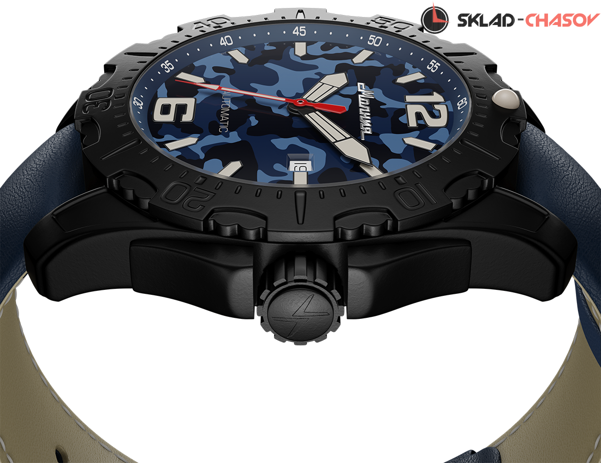 При создании данных часов мы постарались, чтобы модель получилась не только эффектной, но и функциональной. Конструкция нейлонового ремешка заимствована у профессиональных военных и обеспечивает надежную фиксацию, крупные люминесцентные стрелки легко увидеть в темноте, хорошая водостойкость 10 АТМ, поворотный безель, позволяющий засекать промежутки времени и дополнительный кожаный ремешок. Такие часы оценят охотники, путешественники, спортсмены и другие энтузиасты, которые чередуют мегаполис с активным отдыхом на природе.