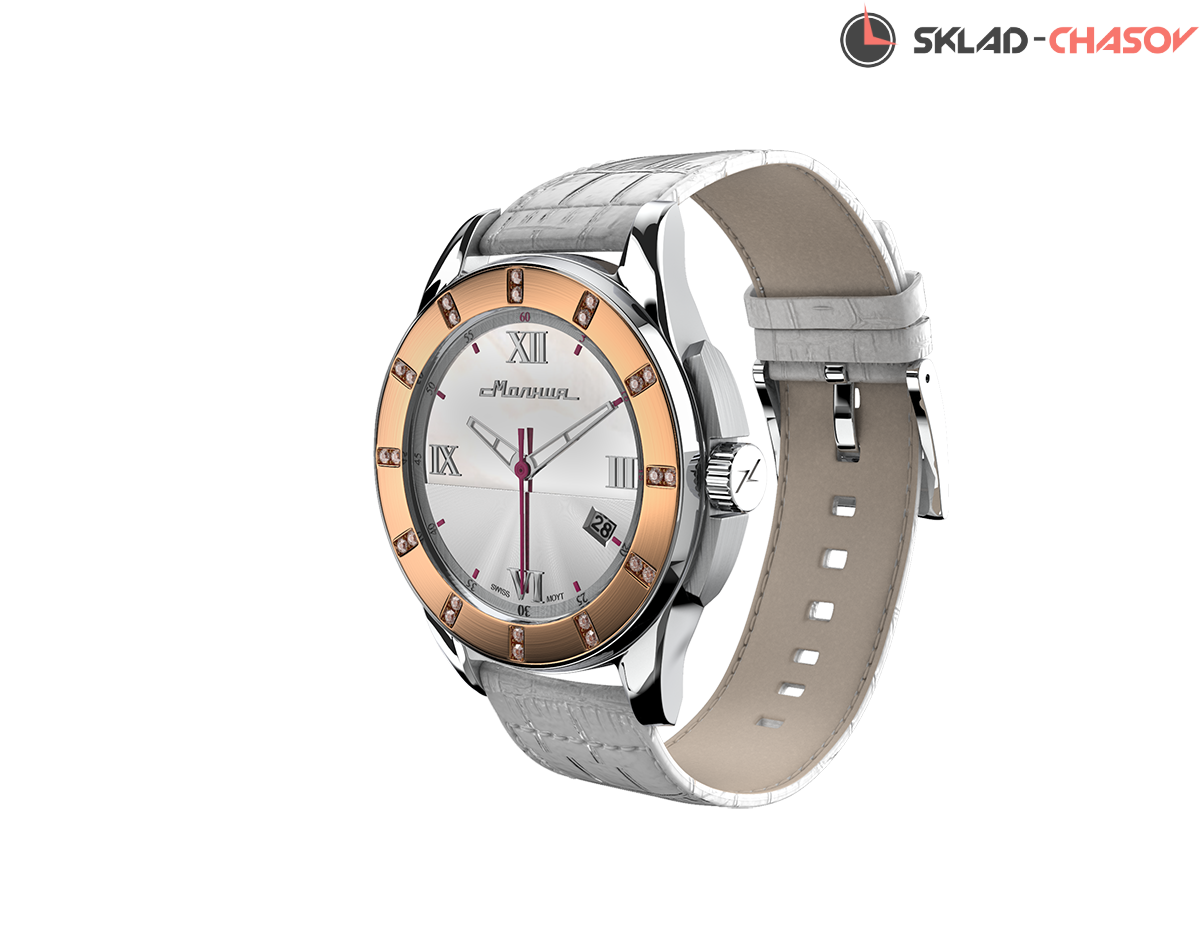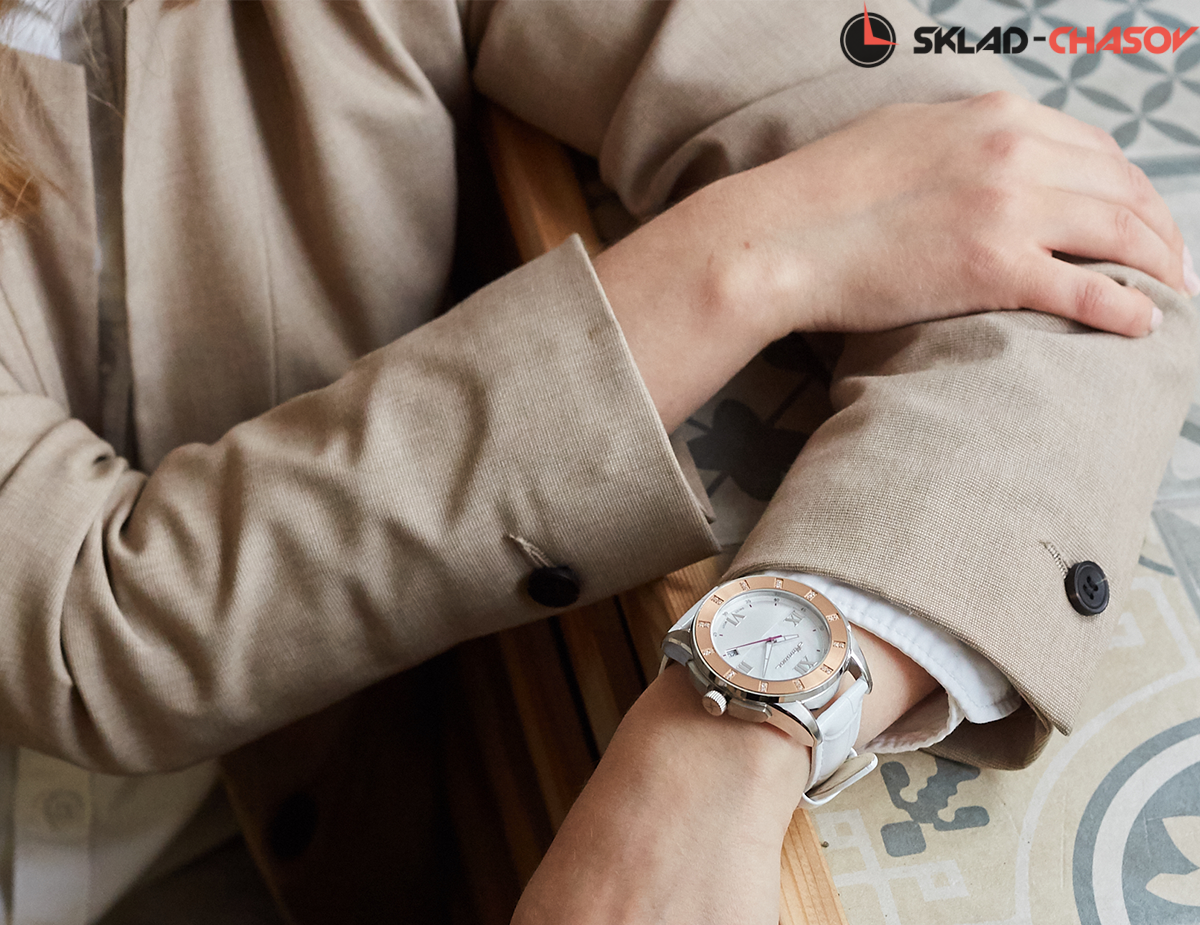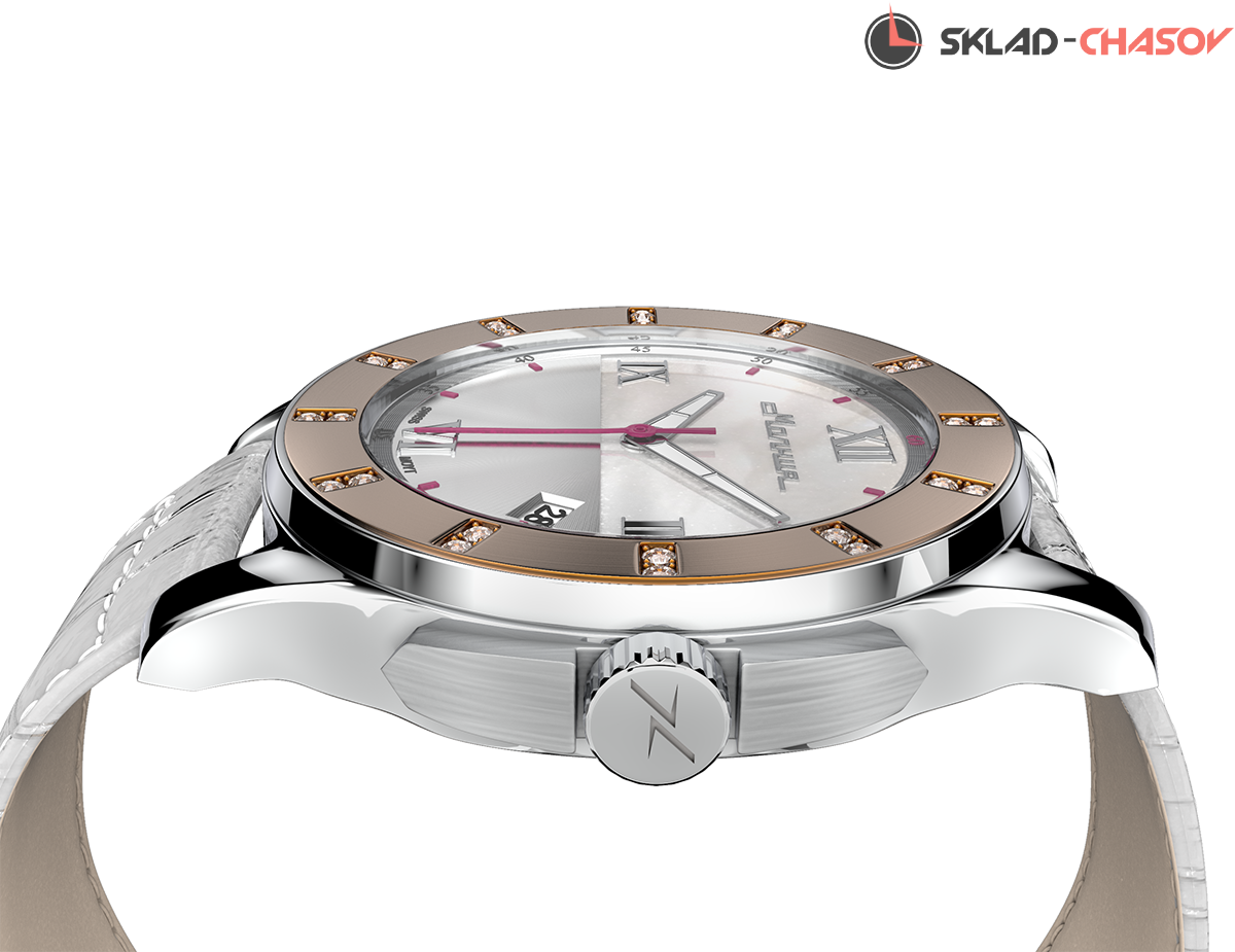 Яркая и женственная модель – результат сотрудничества российских часовщиков и швейцарских дизайнеров. В оформлении двусоставного циферблата использован натуральный перламутр, безель украшен кристаллами циркона, что выгодно оттеняет геометрию корпуса. Часы могут меняться вместе с вашими предпочтениями: кожаный ремешок сделает модель более деликатной, а дополнительный силиконовый браслет добавит образу спортивный характер. К этим часам прилагаются два ремешка в комплекте, кожаный и силиконовый.