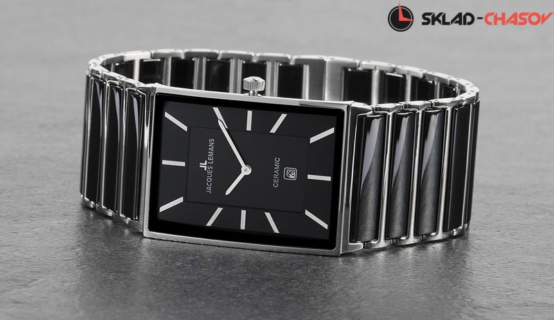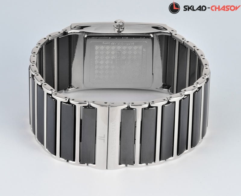 Центральные звенья браслета выполнены из высокотехнологичной керамики и укреплены стальными звеньями по бокам для прочности. Керамика быстро нагревается до температуры тела, поэтому даже в холодное время года носить такие часы комфортно. К тому же, браслет из керамики надолго сохранит прекрасный внешний вид модели, так как противостоит появлению микроцарапин.