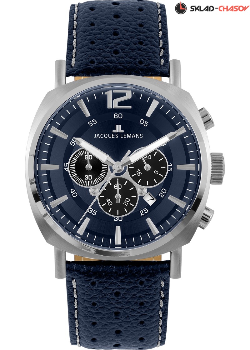 Ремешок синего цвета из натуральной кожи с перфорацией подчеркивает спортивный характер модели. Контрастная прошивка продлевает срок его службы. Эти надежные и функциональные часы с необычным дизайном станут вашим стильным помощником в любой ситуации: и на деловой встрече, и во время занятий спортом.