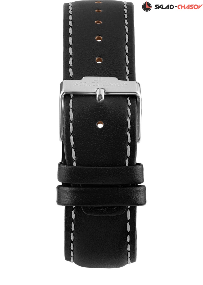 Ремешок черного цвета из натуральной кожи дополнен прошивкой, что повышает его стойкость к износу.