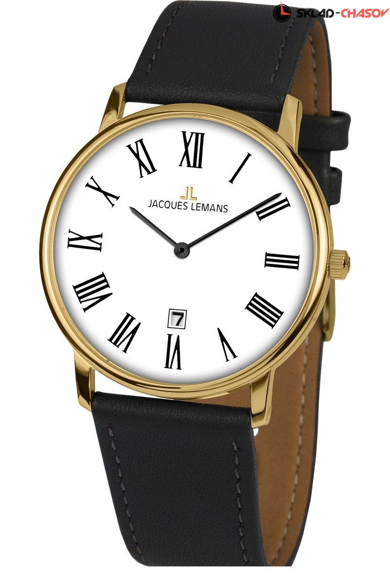 Часы классического дизайна всегда будут на пике моды. Элегантный корпус круглой формы диаметром 40 мм сделан из прочной нержавеющей стали c PVD-покрытием из желтого золота. Тонкий безель с зеркальной полировкой обрамляет минималистичный циферблат белого цвета. Хорошо читаются контрастные римские цифры. Индикатор даты расположен в позиции «6 часов». Гладкий ремешок черного цвета из натуральной кожи дополняет застежка-пряжка с логотипом бренда. Этот аксессуар будет хорошо сочетаться с другими вещами вашего гардероба и поможет сделать любой ваш образ завершенным.