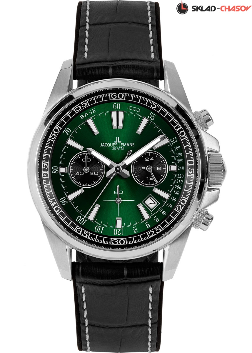Новинка в знаменитой серии 1117 от Jacques Lemans: стильный кварцевый хронограф с повышенной водостойкостью 20 атмосфер, которую обеспечивают завинчивающаяся заводная головка и крышка. Массивный корпус диаметром 44 мм сделан из нержавеющей стали.