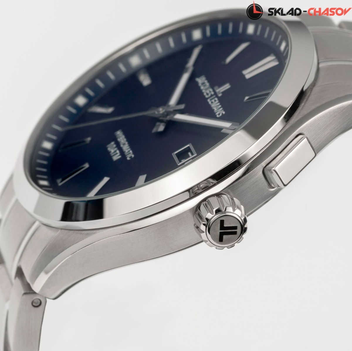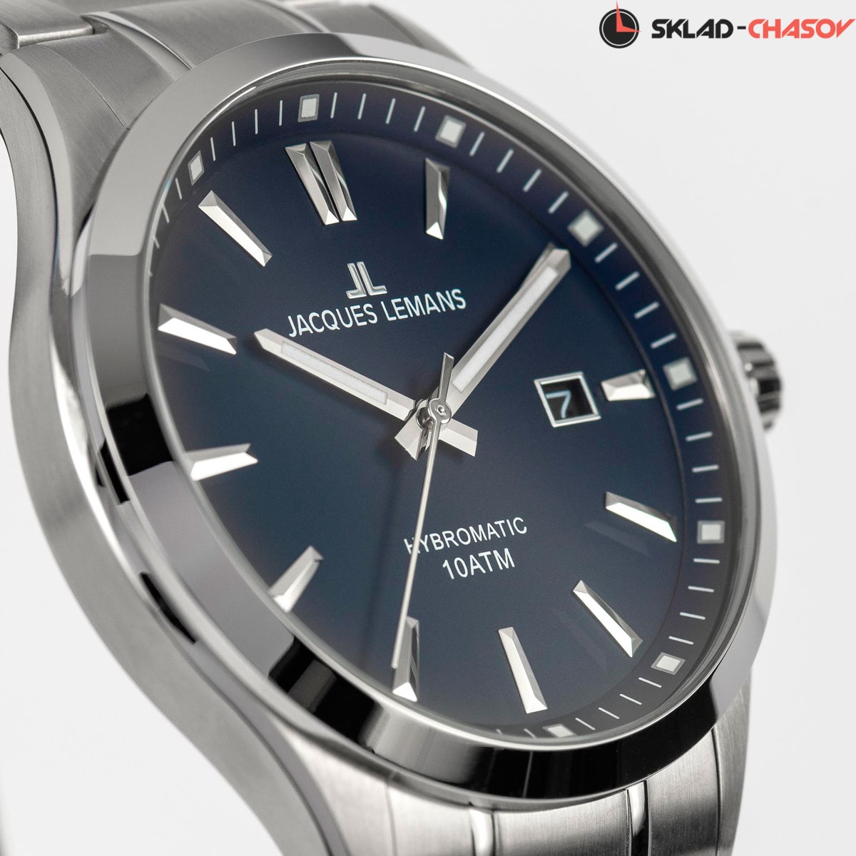 Революционные механические часы: запас хода держится до 180 дней (при полном заводе). Инновационная технология этой модели сочетает в себе функциональность автоматических часов с точностью кварцевых. Особенность Jacques Lemans Hybromatic состоит в том, что энергия для работы часов производится самостоятельно при отсутствии зависимости от элемента питания. Естественные движения руки проводят в движение маховик, генерирующий электрическую энергию, которая используется для запуска часов. Гибридный механизм установлен в корпус диаметром 43 мм из нержавеющей стали. На синем циферблате хорошо читаются крупные стрелки и риски. Они выделены люминесцентным покрытием, которое светится в темноте, помогая определить время в любых условиях видимости. Окошко даты расположено в позиции «3 часа». В модели установлено ударопрочное минеральное стекло Crystex. Прозрачная задняя крышка позволит в подробностях разглядеть необычный механизм. Повышенная водостойкость 10 атмосфер. Стальной браслет дополнен удобной в использовании и надежной застежкой-клипсой. Новые часы от Jacques Lemans – идеальный аксессуар на каждый день: универсальный дизайн и возможность завода механизма при естественных движениях руки владельца.