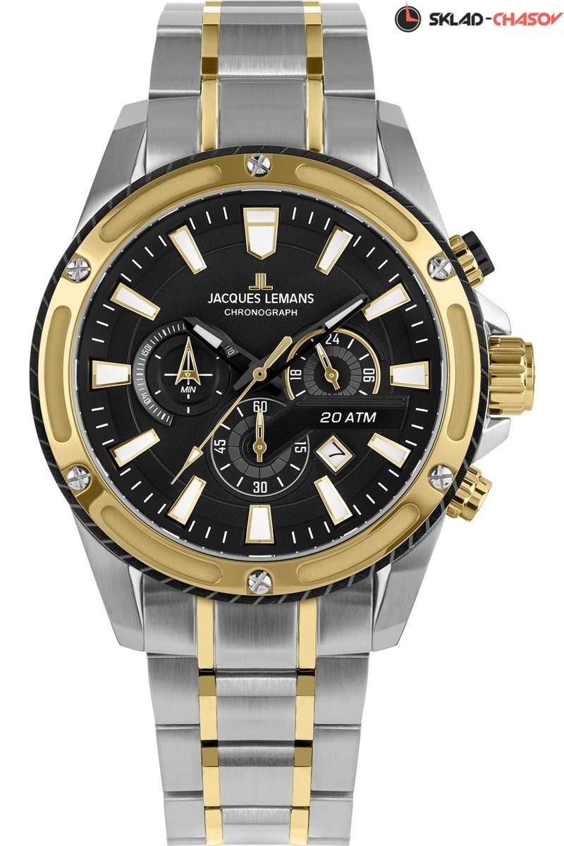 В часах предусмотрены функция 24-часового формата времяисчисления, минутный и секундный накопители и окошко даты.