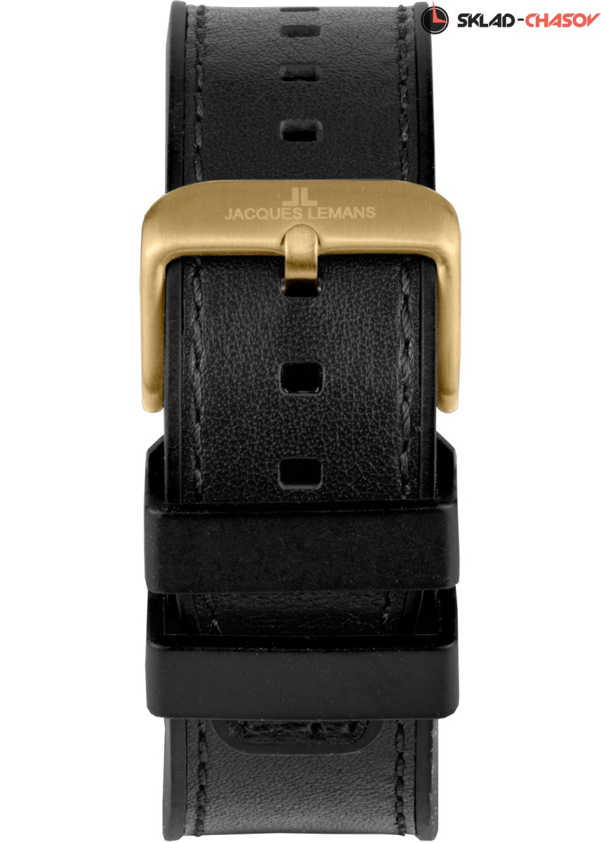 Повышенная водостойкость 10 атмосфер позволяет плавать, не снимая часы с запястья. Заводная головка завинчивается. Это предотвращает ее случайное выпадение в воде или при вынимании руки из кармана. Черный ремешок модели состоит из двух частей: внешний слой из натуральной кожи, внутренний — из силикона.
