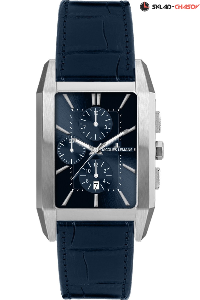 Кварцевый механизм хронографа 1-2161 установлен в стильный прямоугольный корпус из нержавеющей стали. Благодаря эргономичным ушкам часы удобно ложатся на запястье. На синем циферблате расположены крупные риски и центральные стрелки, часовая и минутная выделены люминесцентным покрытием. Дополнительные индикаторы позволяют засекать время в часах, минутах, секундах. Окошко даты разместили на 6 часах. Корпус модели дополняет минеральное стекло с сапфировым напылением. Ремешок сделан из натуральной кожи темно-синего цвета с прошивкой. Элегантные часы 1-2161 выигрышно дополнят любой образ, а полезные функции хронографа всегда будут под рукой.