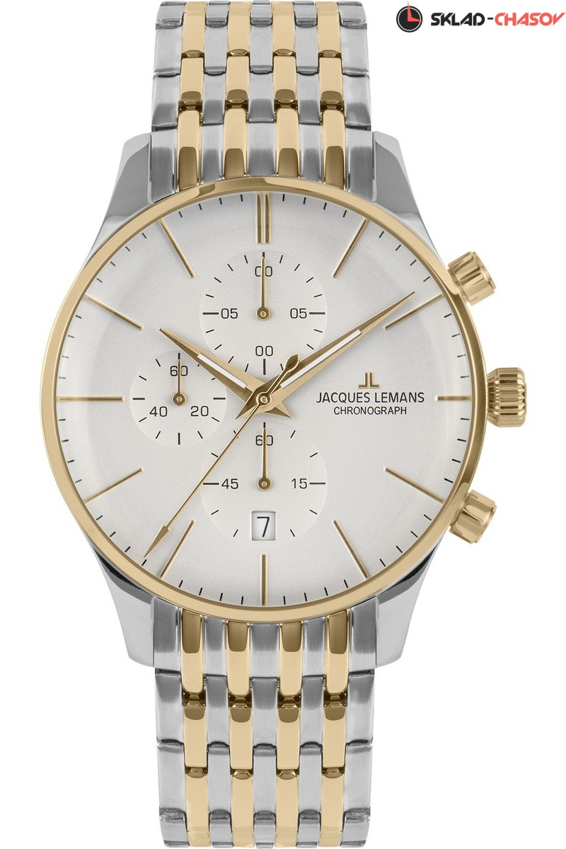 Кварцевый механизм хронографа серии 1-2163 установлен в классический круглый корпус диаметром 40 мм, сделанный из нержавеющей стали с PVD-покрытием из желтого золота. Особенность модели — выпуклое минеральное стекло, еще одна отсылка к стилю ретро. На белом циферблате все 6 стрелок выполняют свои функции: центральные показывают время с точностью до секунды, с помощью трех дополнительных индикаторов можно засекать время в минутах, секундах и 1/10 секунды. Окошко даты разместили на 6 часах. Браслет сделан из нержавеющей стали с удобной в использовании раскладывающейся застежкой.