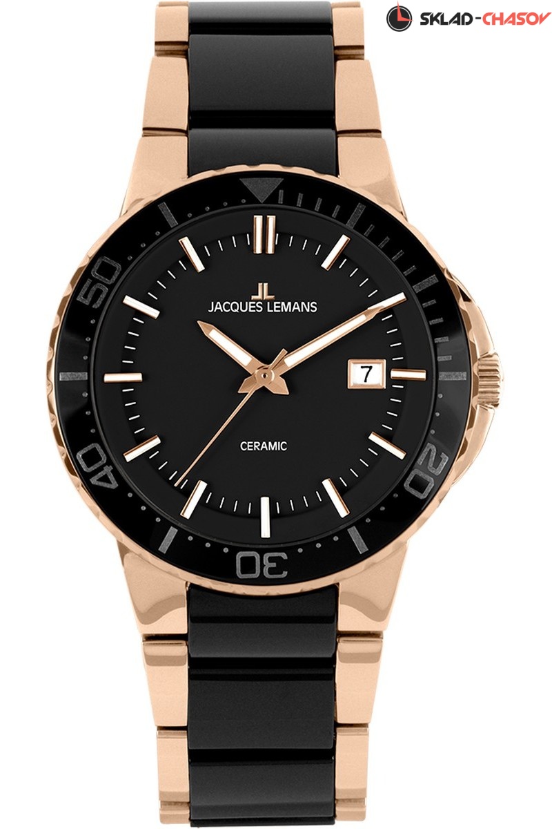 Кварцевые часы серии 1-2164 установлены в массивный корпус из нержавеющей стали с PVD-покрытием из розового золота и эффектным безелем: он сделан из высокотехнологичной керамики с дополнительной индикацией. Безель вращается, что позволяет удобнее засекать время. На широком циферблате черного цвета расположены крупные риски и стрелки с люминесцентным покрытием, которое светится в темноте. Окошко даты на 3 часах выделено накладной рамкой. Водостойкость часов повышена, она составляет 10 атмосфер. Циферблат защищен минеральным стеклом с сапфировым напылением. Браслет часов собран из стальных и керамических звеньев, раскладывающаяся застежка удобна в использовании и надежно удерживает аксессуар на запястье.