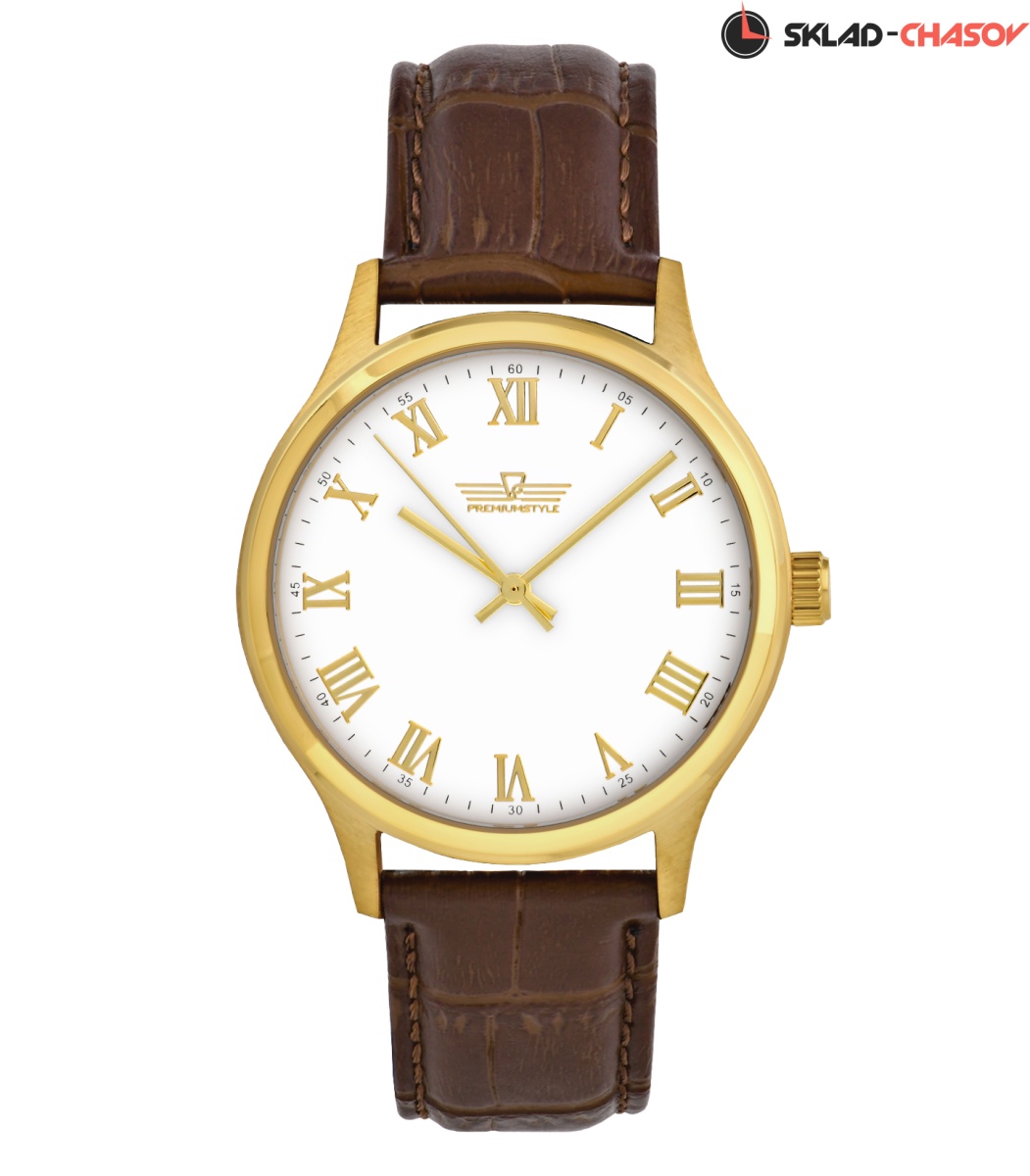 Наручные мужские часы с японским кварцевым механизмом выполнены в лаконичном стиле. Корпус часов круглой формы диаметром 40 мм изготовлен из нержавеющей стали с высокостойким покрытием золотистого цвета методом ионно-плазменного напыления (IPJ).