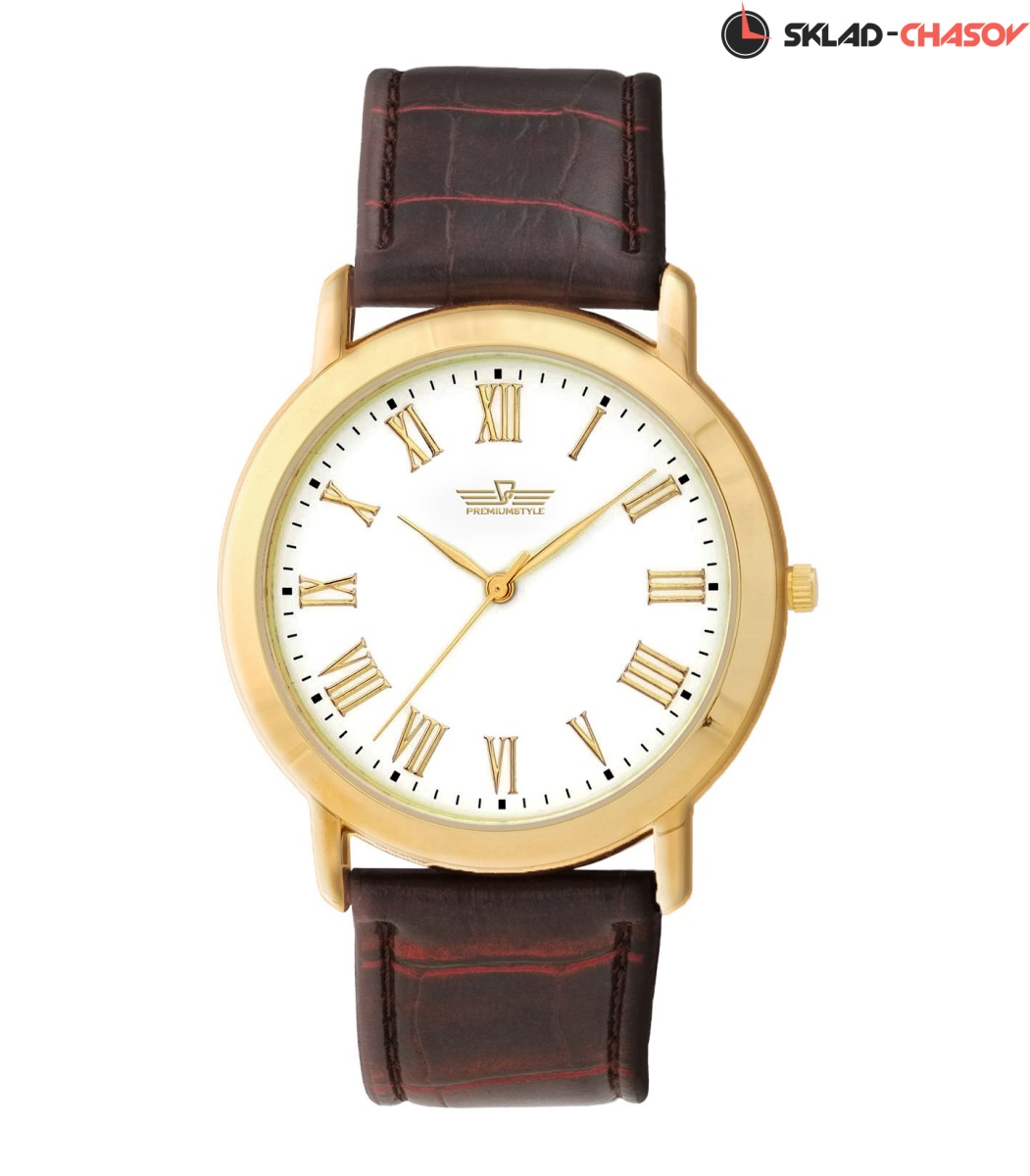 Белый глянцевый циферблат, на котором отчётливо видны три стрелки часов, накладные часовые индексы. Модель есть в другом варианте.